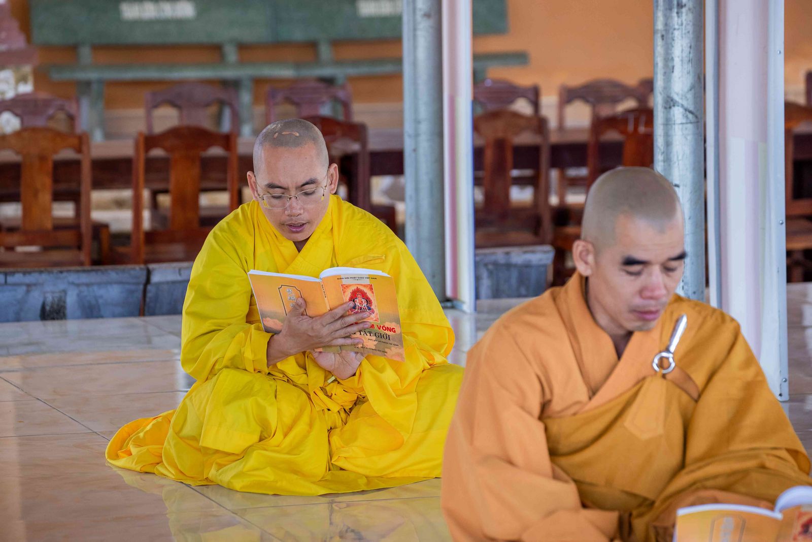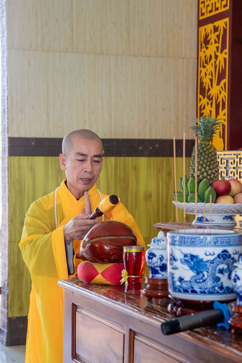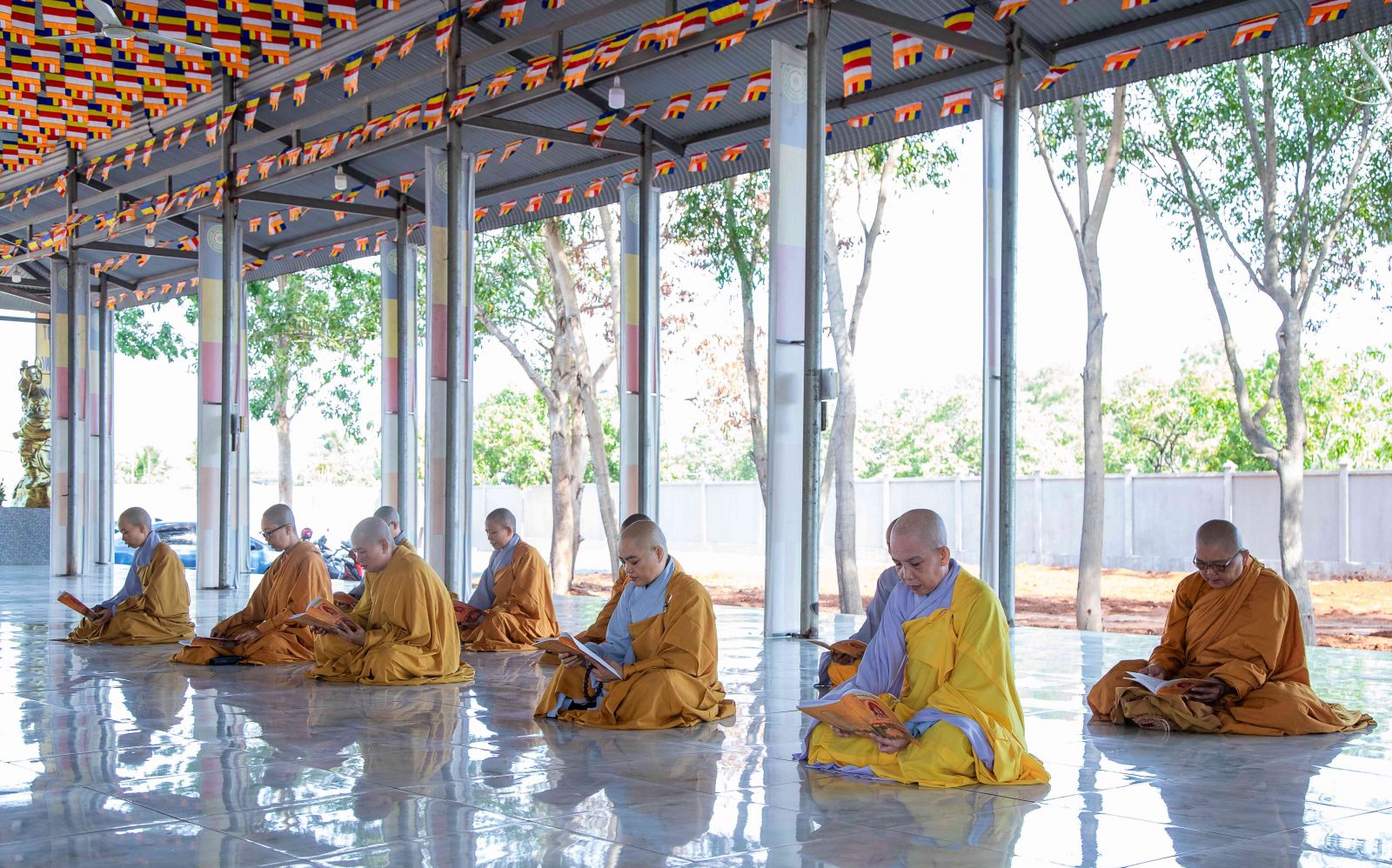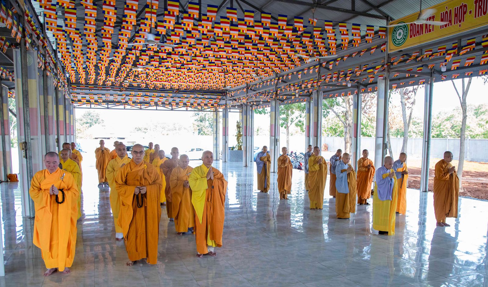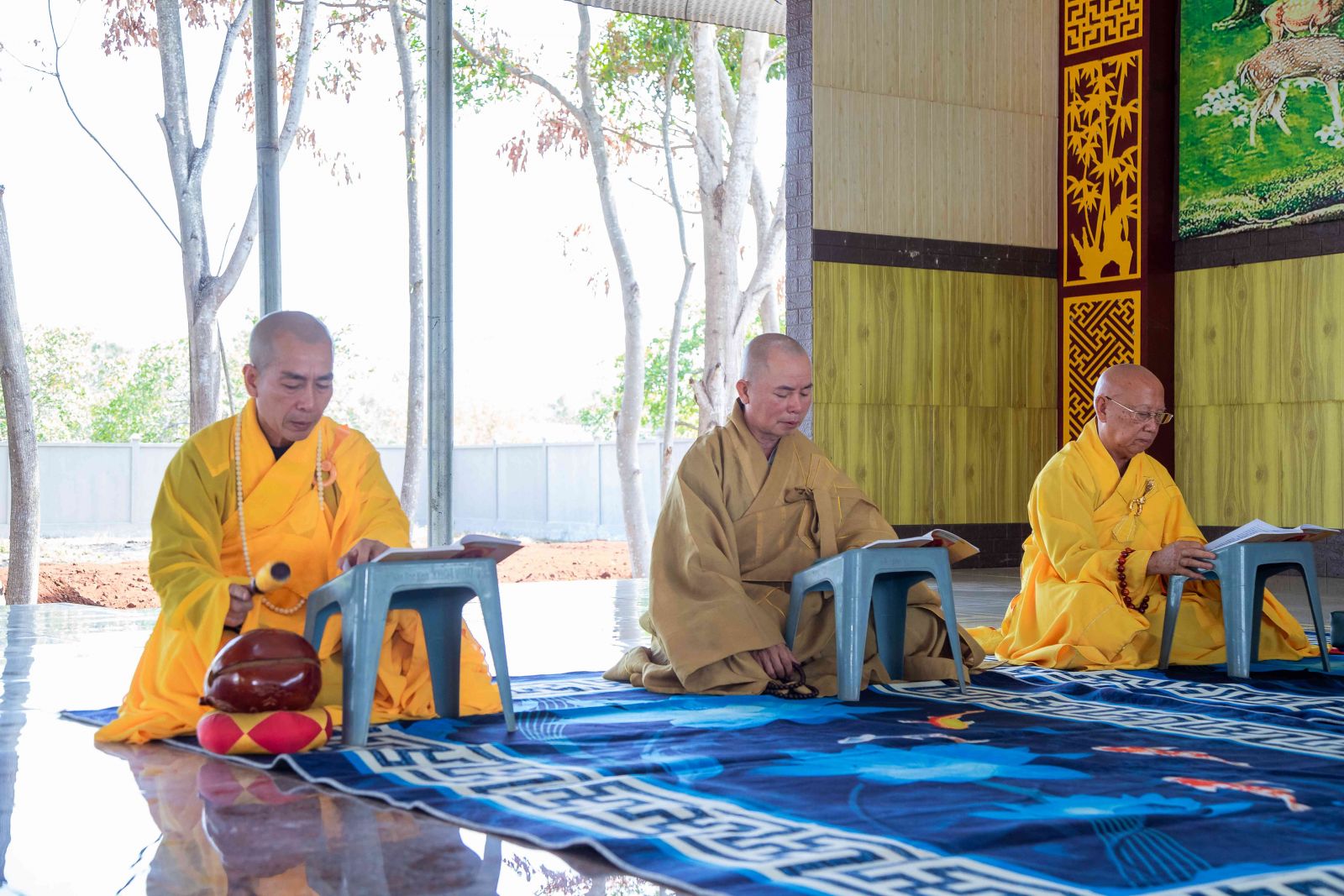 Tại Chánh điện, Chư tôn đức giáo phẩm Ban Chứng minh, chư Tôn đức Ban Trị sự đã niêm hương bạch Phật; toàn thể đại chúng thành kính đảnh lễ Tam bảo, thực hiện nghi thức Yết-ma Bố-tát, tụng giới. Kỳ Bố-tát hàng tháng ngoài mùa An cư kiết hạ nên toàn thể chư Tôn đức Tăng Ni đồng trì tụng Kinh Phạm Võng Bồ Tát Giới.