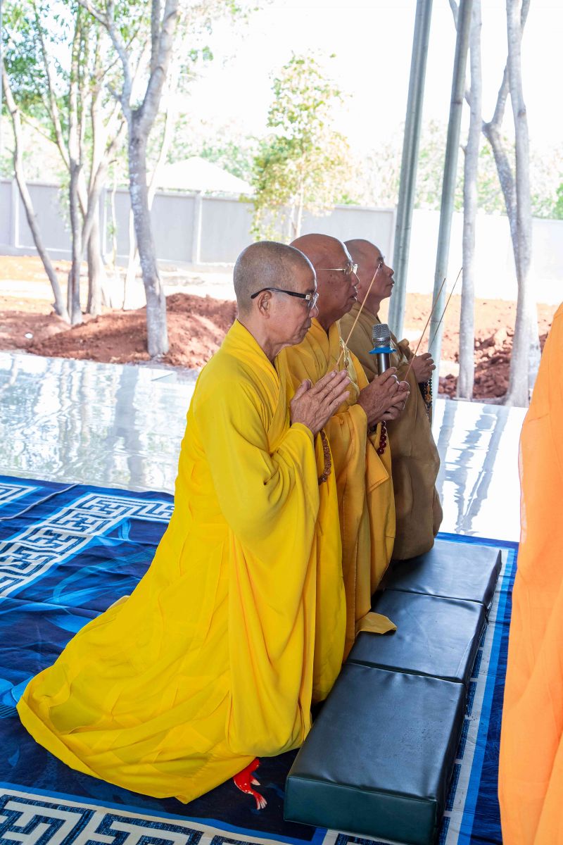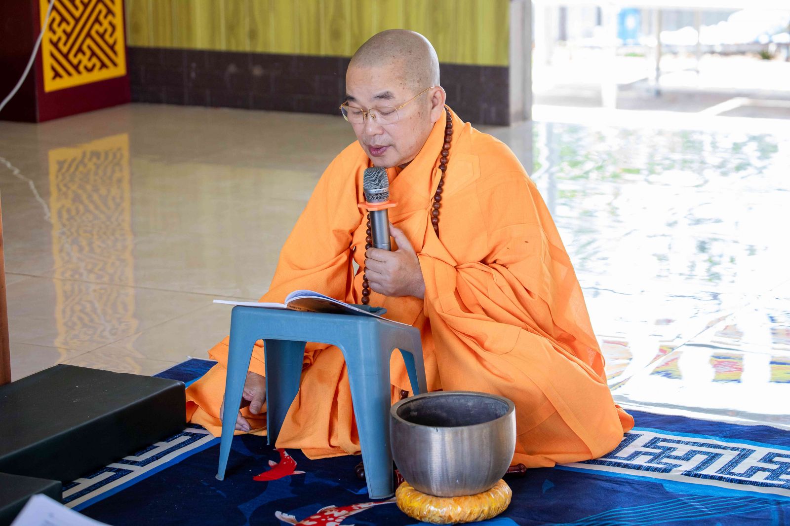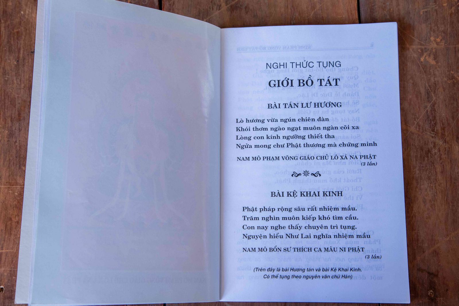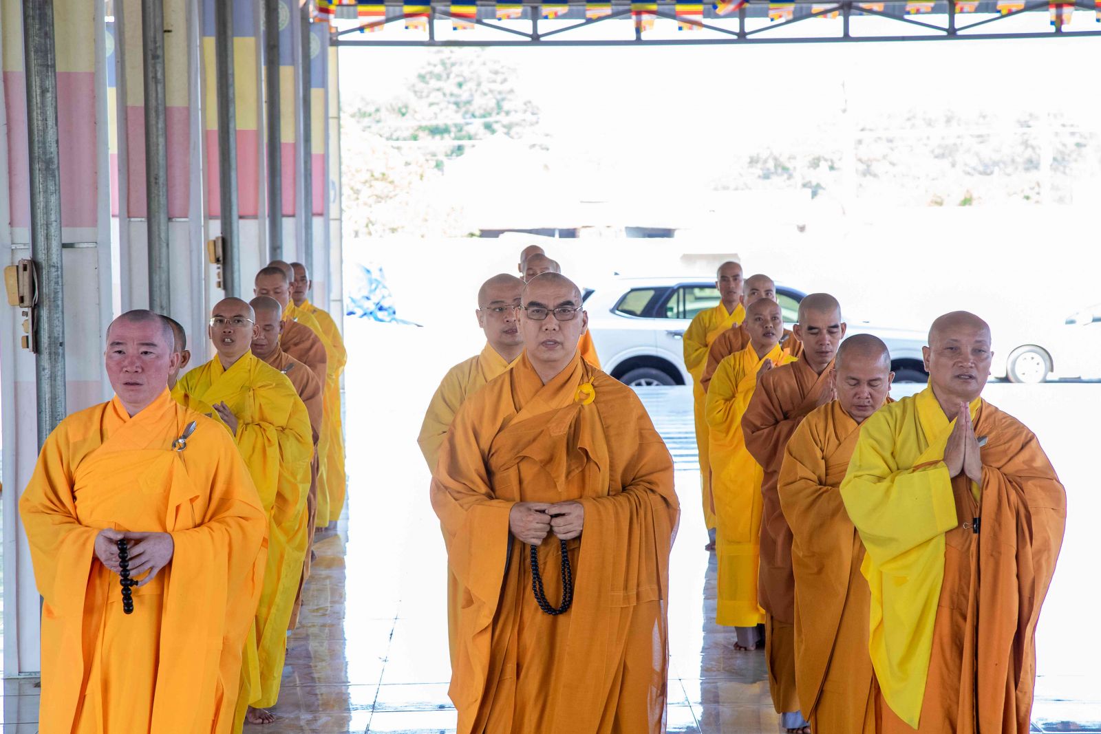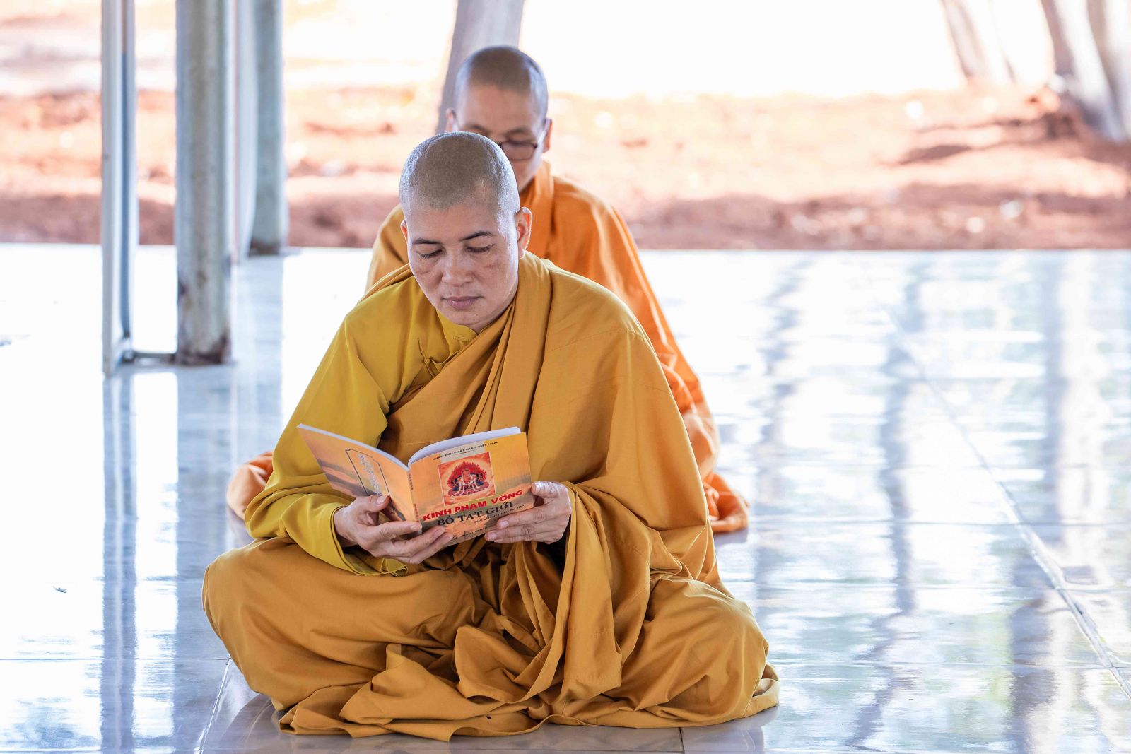 Tại Chánh điện, Chư tôn đức giáo phẩm Ban Chứng minh, chư Tôn đức Ban Trị sự đã niêm hương bạch Phật; toàn thể đại chúng thành kính đảnh lễ Tam bảo, thực hiện nghi thức Yết-ma Bố-tát, tụng giới. Kỳ Bố-tát hàng tháng ngoài mùa An cư kiết hạ nên toàn thể chư Tôn đức Tăng Ni đồng trì tụng Kinh Phạm Võng Bồ Tát Giới.