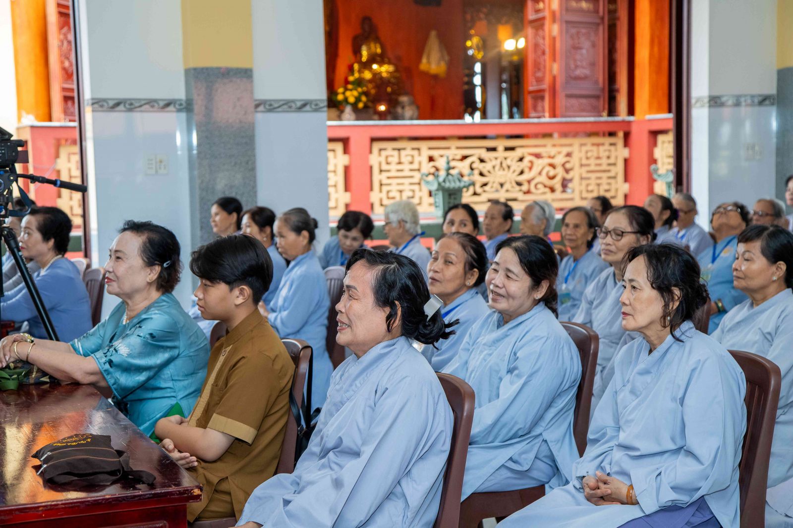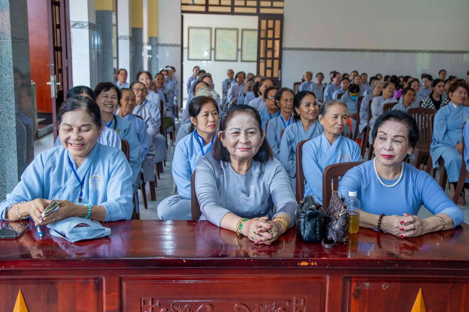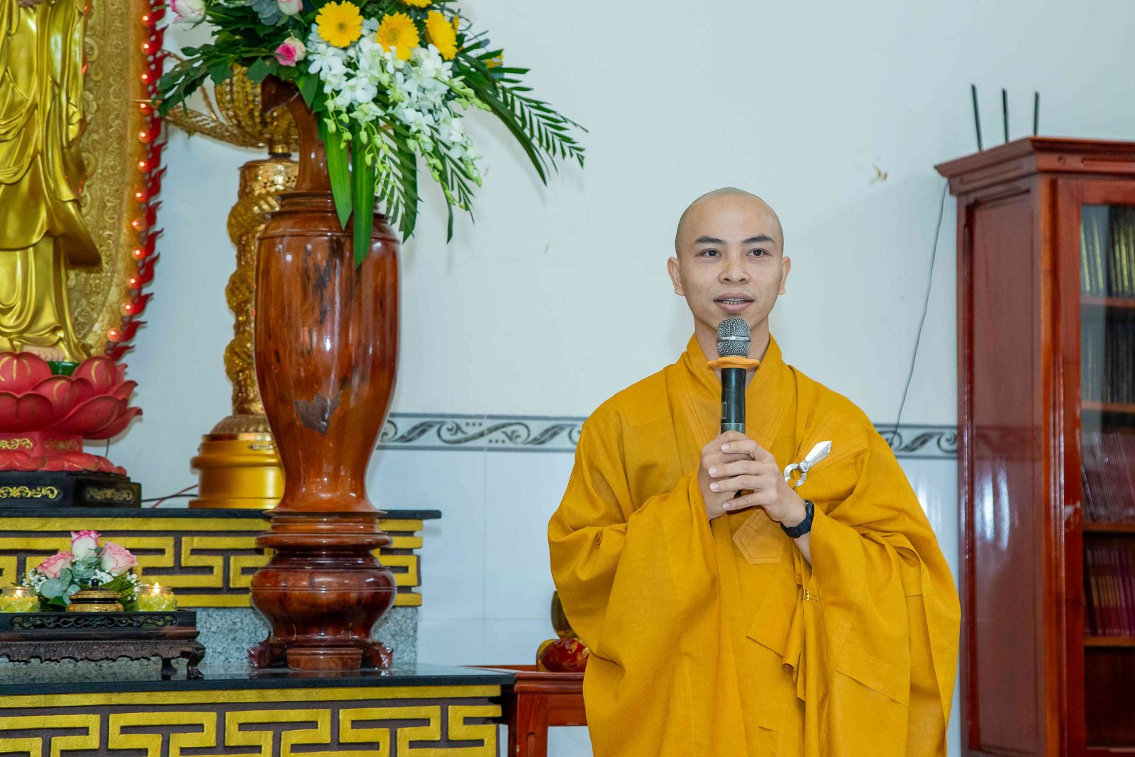 Đúng 08h30’, toàn thể đạo tràng trang nghiêm cung đón SC. Thích nữ Trung Xả - Ủy viên BTS GHPGVN huyện, trú xứ chùa Bảo Quang, xã Suối Cát quang lâm thuyết giảng. Đến với đạo tràng tu học tại Chùa Minh Hiệp, Sư cô rất hoan hỷ khi quý Phật tử tham gia tu học đông đủ trang nghiêm. Sư cô đã chia sẻ bài pháp thoại với đề tài: “Hành trang về với Phật”. Trong thời chia sẻ Sư cô nhấn mạnh: “Điều quan trọng của người tu học Phật chúng ta điều tiên quyết cần và phải thực hiện đó là hạnh buông xả. Đối với thân cần buông xả về năm món dục: Tài, sắc, danh, thực, thùy. Đối với tâm cần phải loại trừ 3 món độc đó là: tham, sân và si. Như Đức Thế Tôn đã từng xả bỏ ngôi vị vương giả, vốn dĩ đầy đủ vật chất của bậc Đông cung Thái tử ở thế gian để đi tìm một đời sống thanh bần cao quý và trạng thái hỷ lạc. Chúng ta vốn dĩ là người Phật tử vào chùa tu học một ngày để mong tìm được sự an lạc, thanh tịnh thì nhất quyết phải cố gắng xả bỏ đi những sự vướng bận hằng ngày, chỉ nên tập trung vào việc tụng kinh, niệm Phật, nghe pháp ngõ hầu chuyển hóa những phiền não thành Bồ-đề”. Thời Pháp thoại khép lại trong niềm hoan hỷ của toàn thể đại chúng.