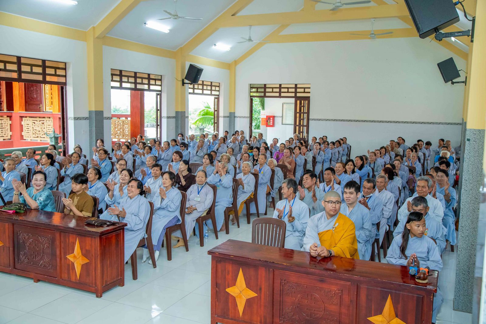 Chỉ tịnh xong, đại chúng tiếp tục trì tụng thời kinh Vô Lượng Thọ tiếp theo. Sau đó ĐĐ. Thích Vạn Đức - Phó Trụ trì Chùa Minh Hiệp đã có buổi sinh hoạt cuối khóa cùng toàn thể đạo tràng tu học. Khóa tu Một ngày an lạc lần thứ 114 khép lại trong niềm hỷ lạc của tất cả mọi người.
