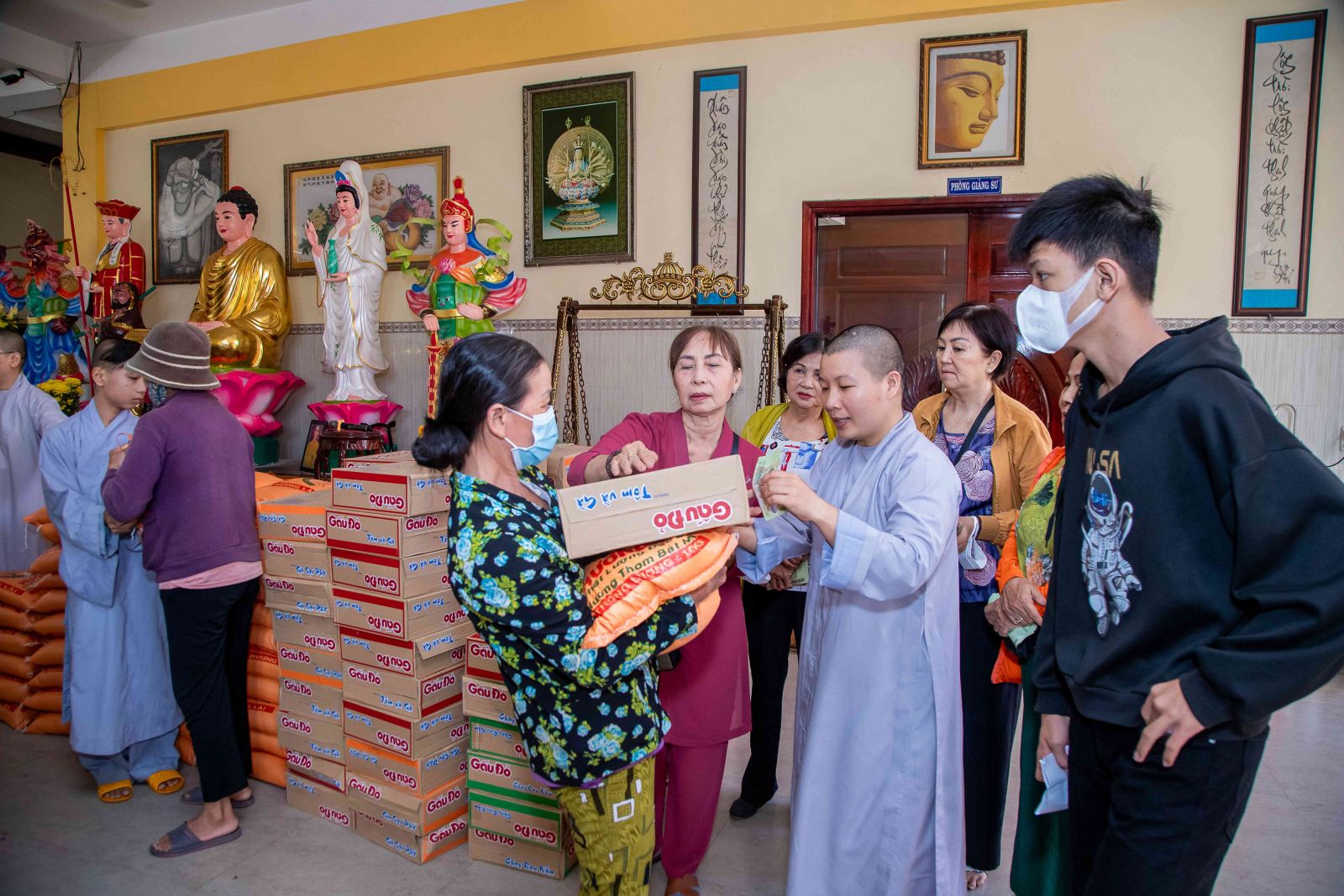 Buổi trao tặng quà khép lại trong niềm hoan hỷ của các gia đình các nạn nhận có người nhiễm chất độc màu da cam khi đón nhận những phần quà từ tay chư Tôn đức Tăng Ni và quý Phật tử Mạnh thường quân.