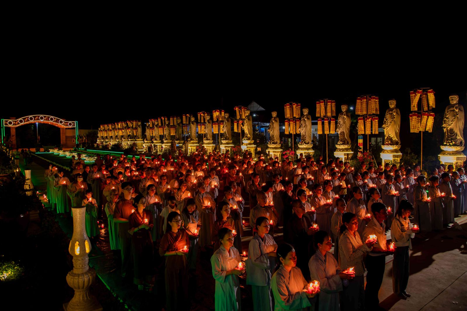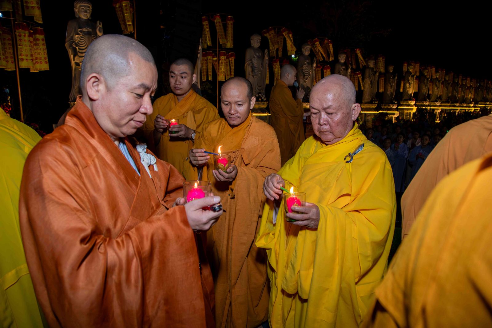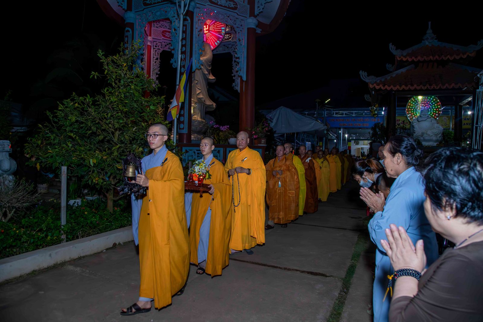 Sau nghi thức niêm hương bạch Phật, truyền đăng để lan tỏa năng lượng an lành đến với pháp giới chúng sanh nguyện cầu khắp chốn được thanh bình, an lạc. ĐĐ. Thích Thiện Trí - Phó Thư ký, Chánh Văn Phòng BTS GHPGVN tỉnh đã truyên đọc 48 lời đại nguyện của Đức từ phụ A-di-đà. Sau đó toàn thể hội chúng trang nghiêm tuần tự hữu nhiễu quanh vườn Cực Lạc.