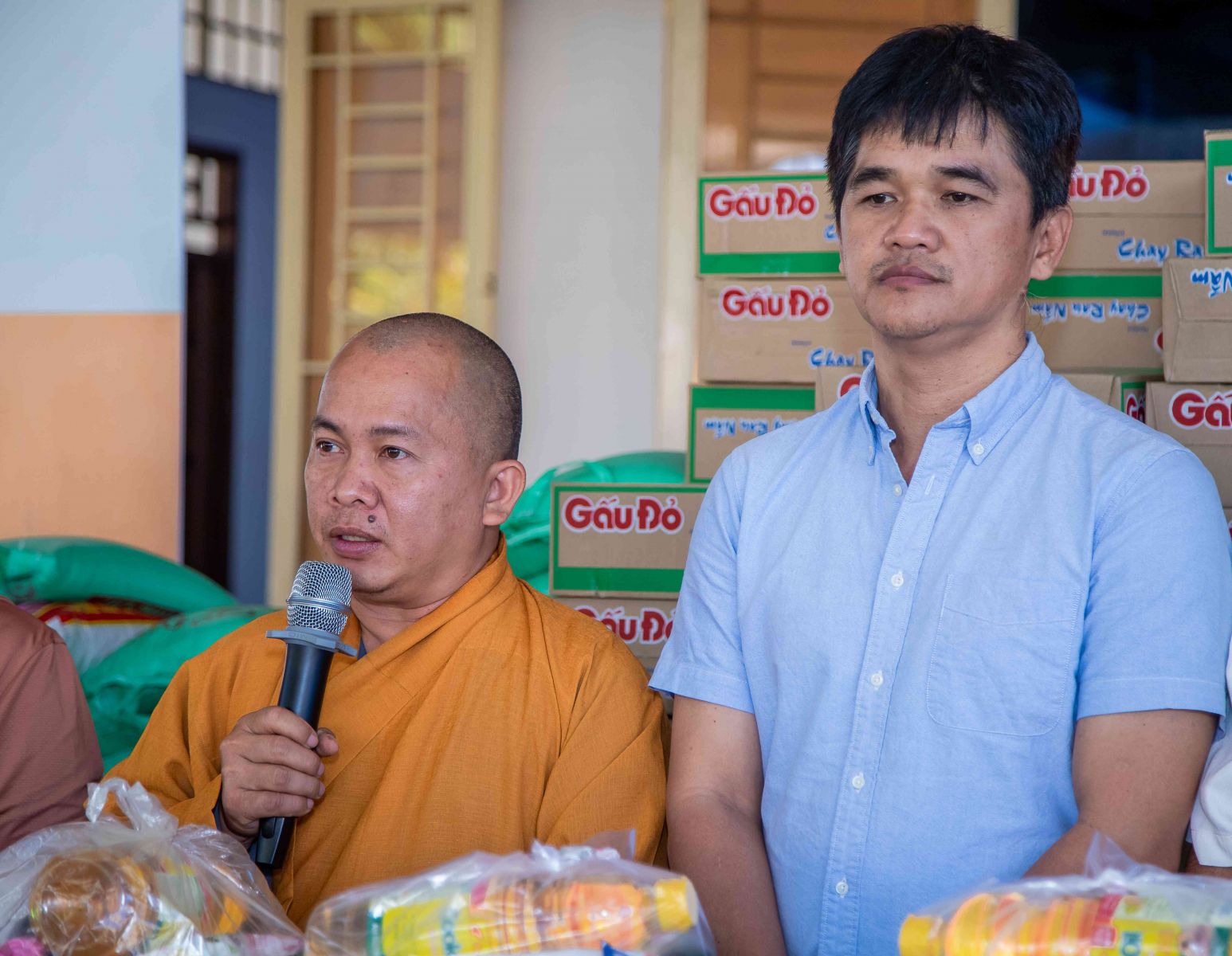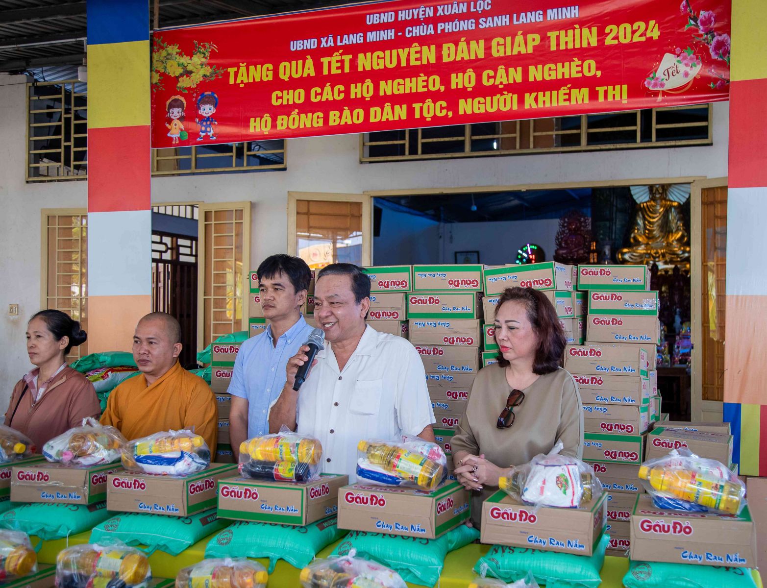 Phật tử Thiện Thành đã đại diện cho quý Phật tử Mạnh thường quân và Đạo tràng Chùa Phóng Sanh có lời phát biểu cảm niệm tri ân sâu sắc đến Đại đức trụ trì Chùa Phóng Sanh đã tạo duyên lành cho 2 nhóm Phật tử Tịnh Nguyệt, cô Tâm và gia đình Phật tử Thiện Thành có đủ duyên lành để được chia sẻ yêu thương đến với người khó khăn và hội người khiếm thị tại địa phương trong dịp tết Giáp Thìn sắp đến.