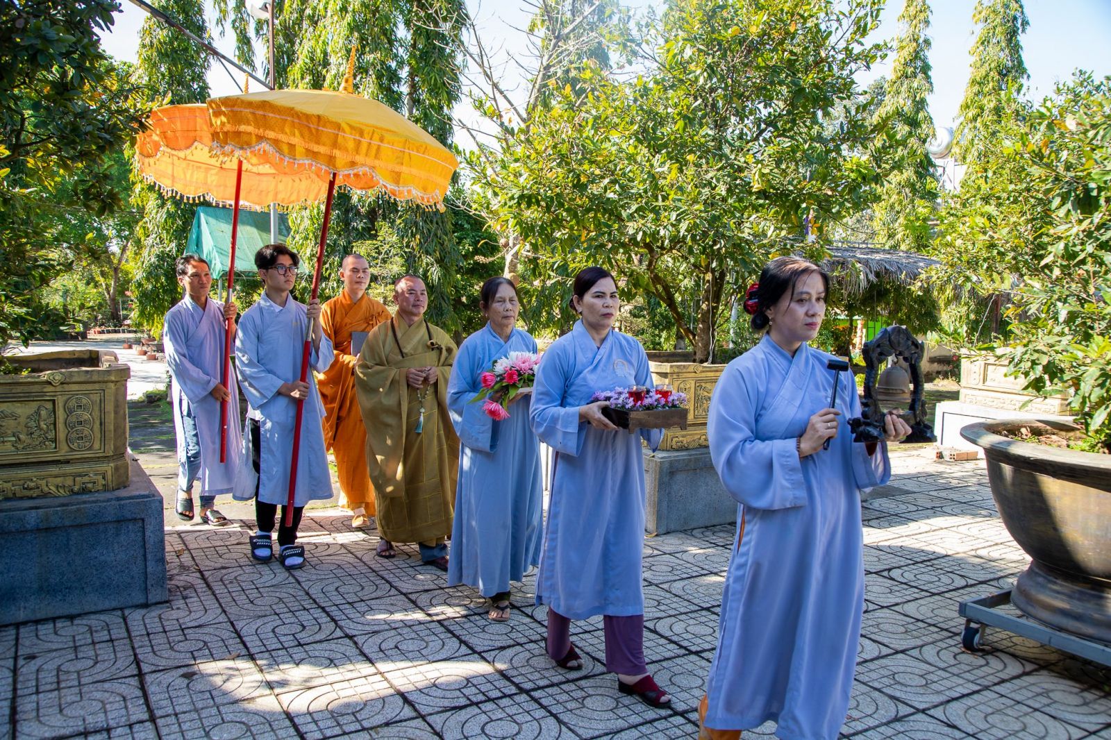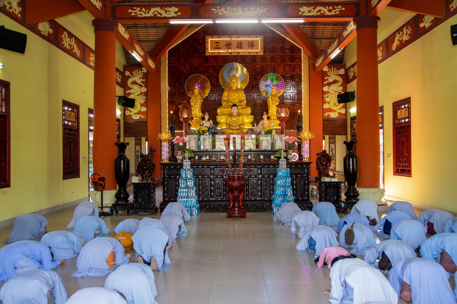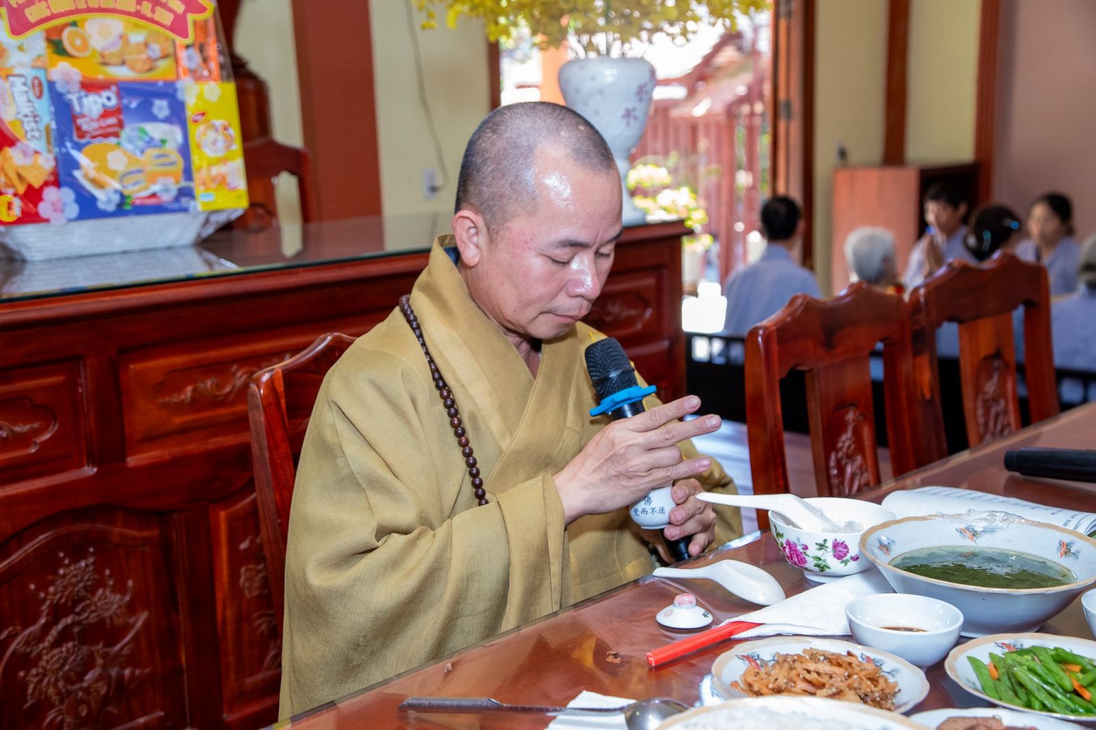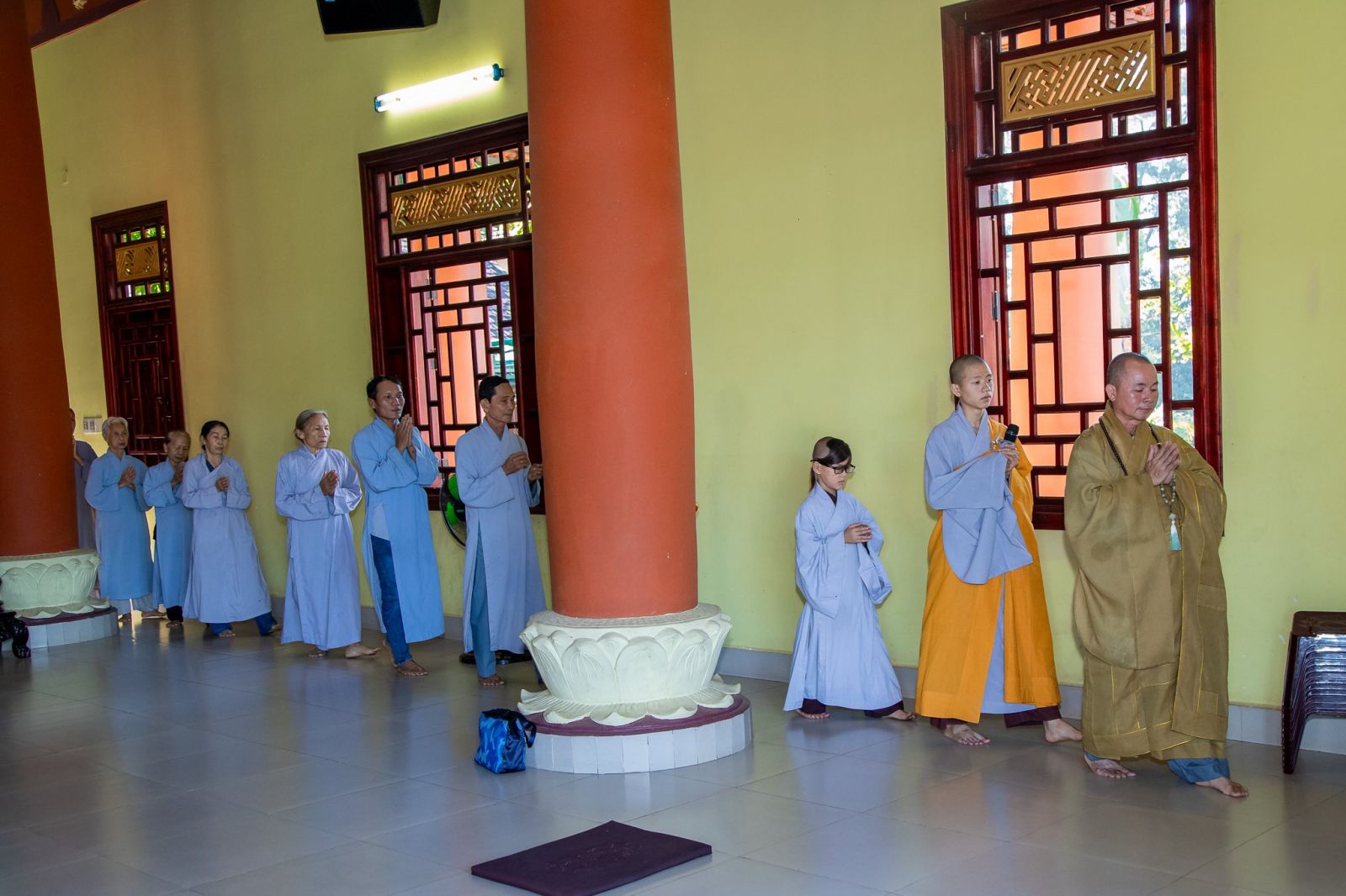 Sau thời pháp thoại, đạo tràng Phật tử đồng kinh hành niệm Phật về tại Trai đường, cử hành nghi thức quá đường và thọ trai trong sự trang nghiêm thanh tịnh.