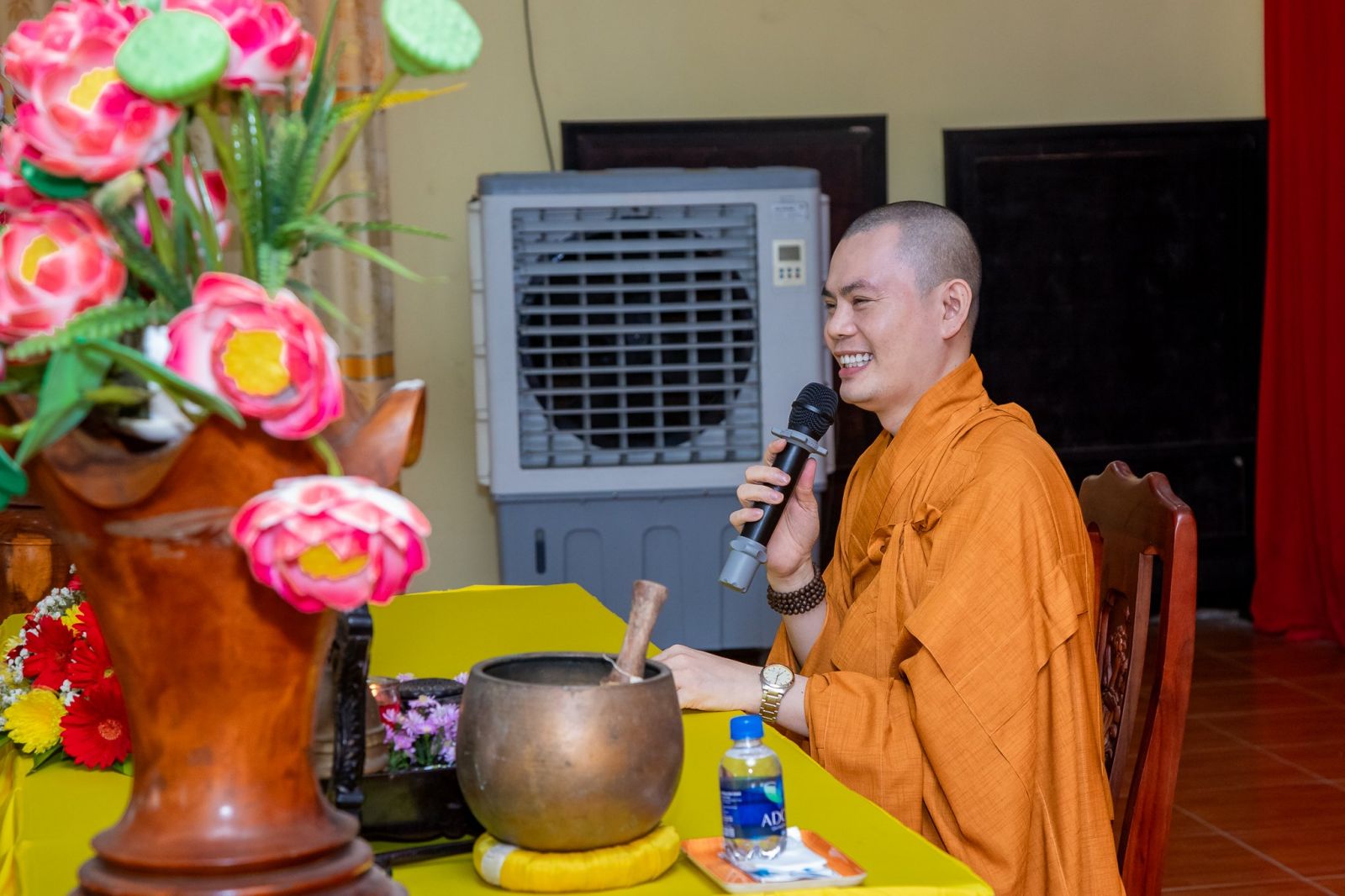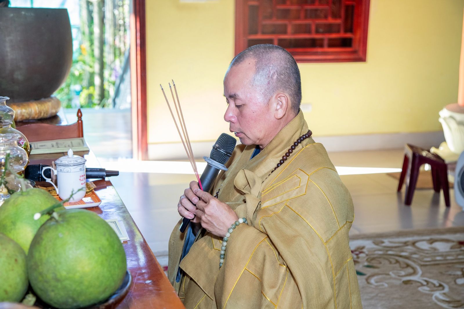 Sau khi dùng điểm tâm sáng xong, toàn thể đạo tràng thành tâm cung thỉnh TT. Thích Huệ Quang - UV BTS GHPGVN tỉnh, Trưởng ban BTS GHPGVN huyện, trụ trì chùa Trúc Lâm, Trưởng Ban tổ chức khóa tu quang lâm Đại hùng bảo điện cử hành nghi thức niêm hương bạch Phật, khai khóa tu học. Các Phật tử tham dự khóa tu học bắt đầu trì danh hiệu Đức Phật A-di-đà và luân phiên kinh hành.