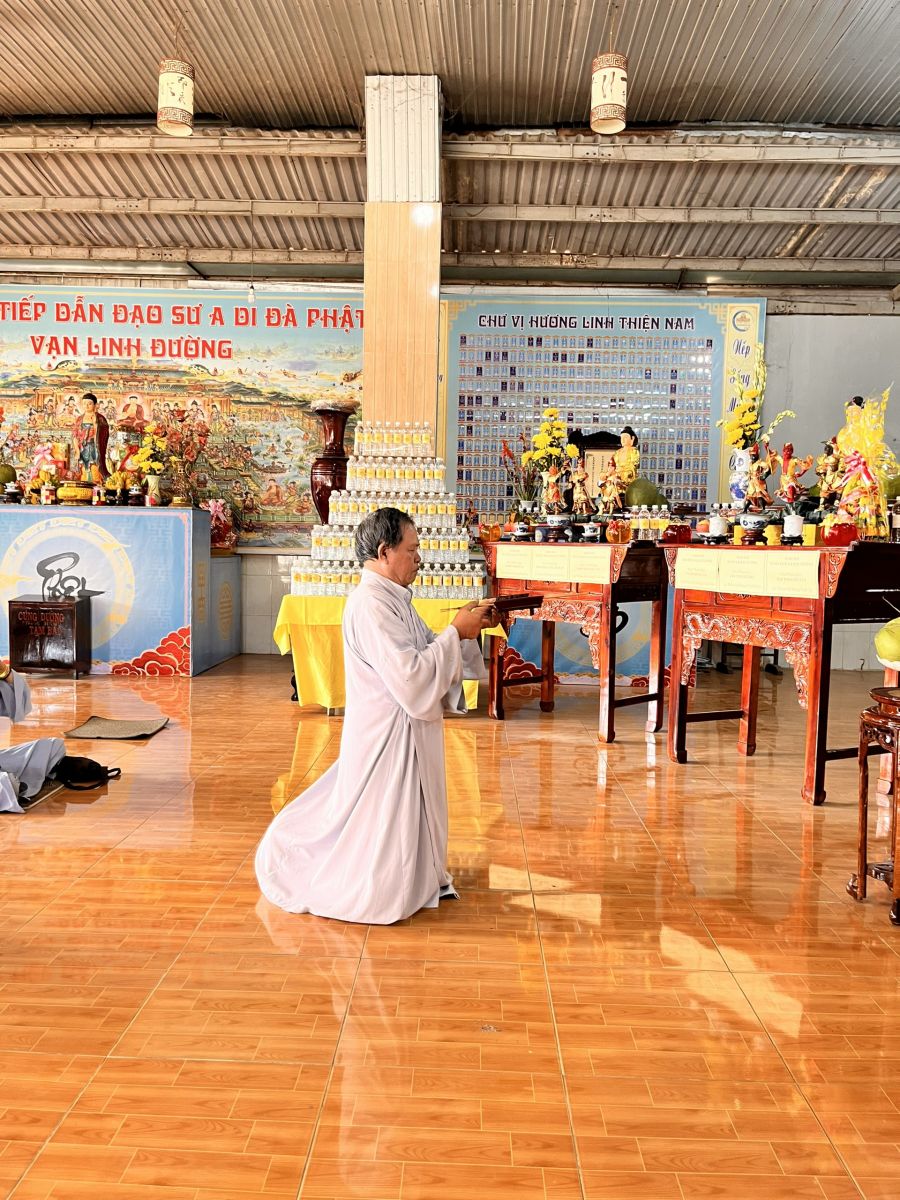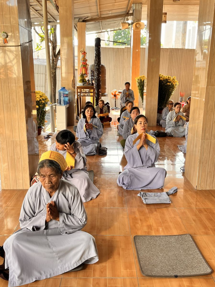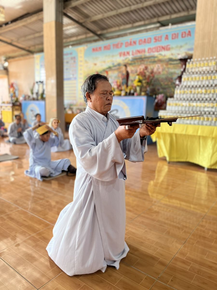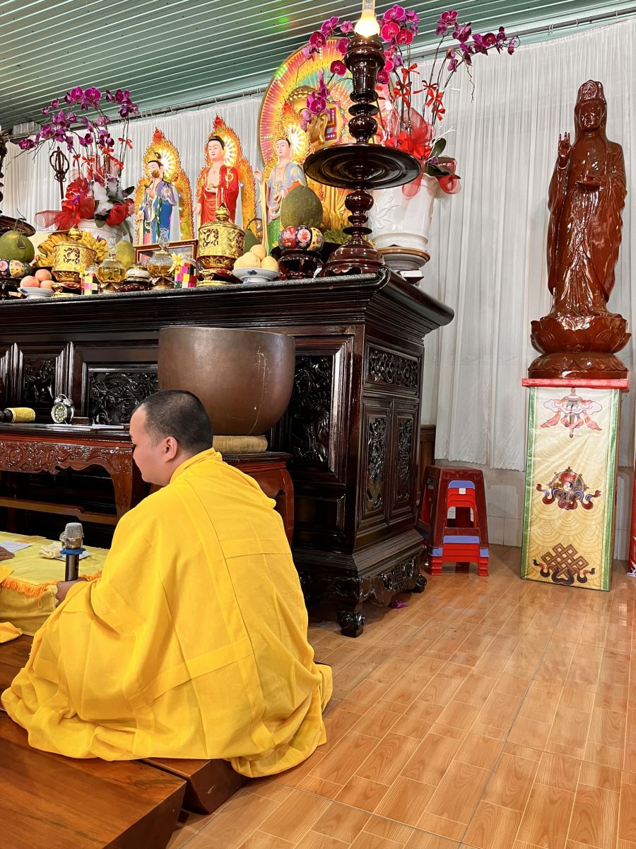 Tiếp đó, Đại đức Trụ trì cùng chư Tôn đức tại bổn tự và Phật tử đã trì tụng kinh Dược Sư Bổn nguyện Công đức và dâng sớ cầu an cho Phật tử.