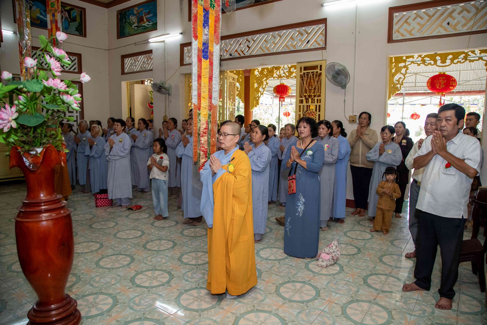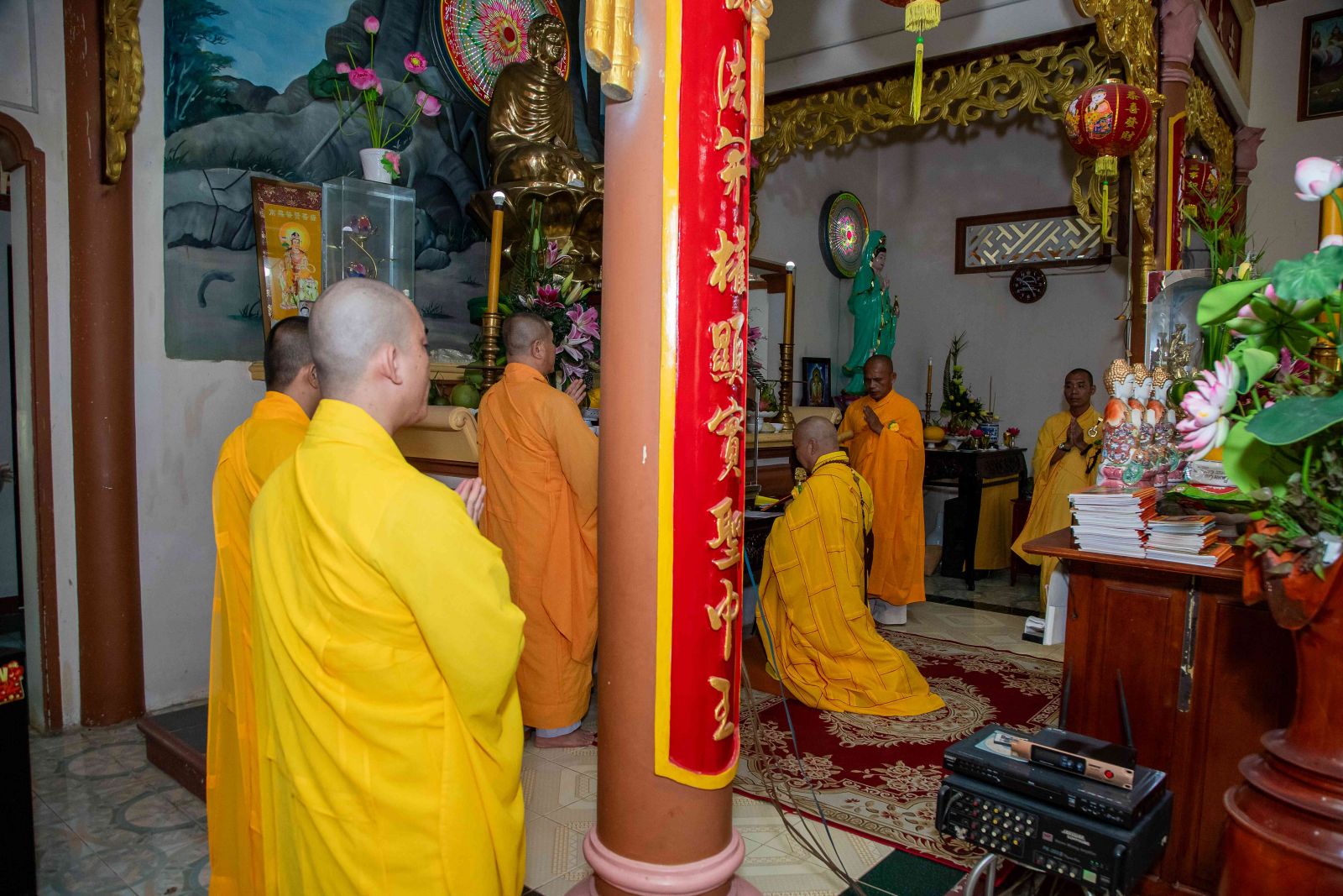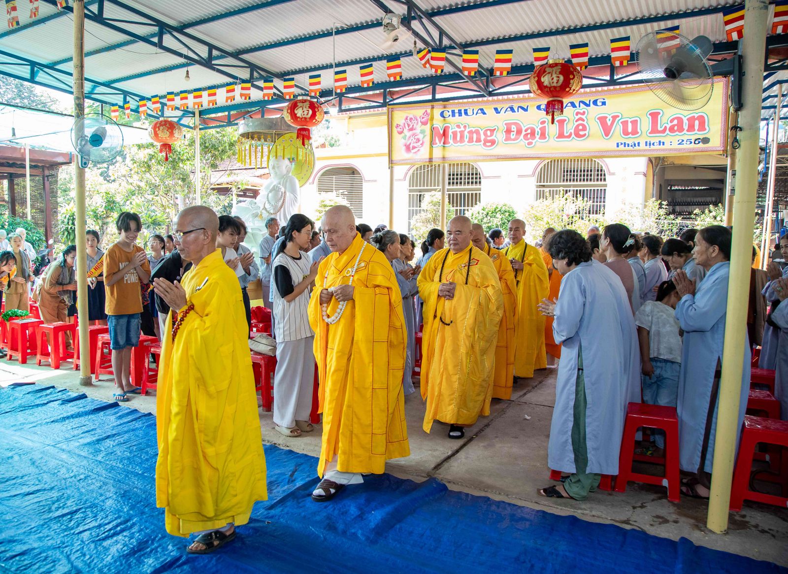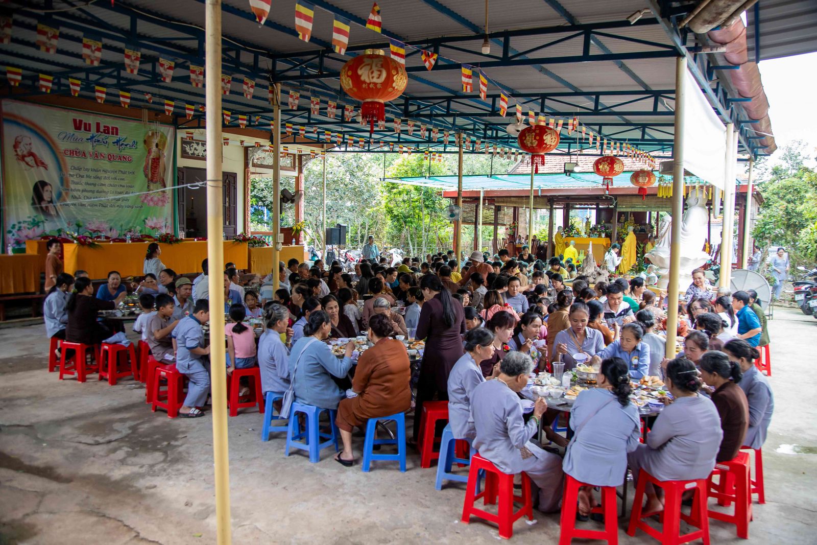 Sau đó Hòa thượng cùng quý Phật tử chùa Vân Quang thành tâm thiết lễ cúng dường trai Tăng kính mừng khánh tuế chư Tôn thiền đức Tăng Ni vừa tăng quang hạ lạp.