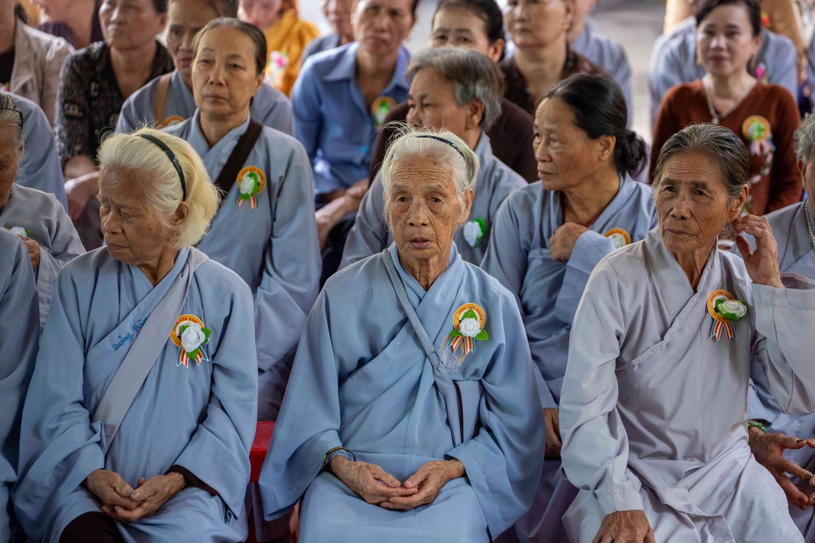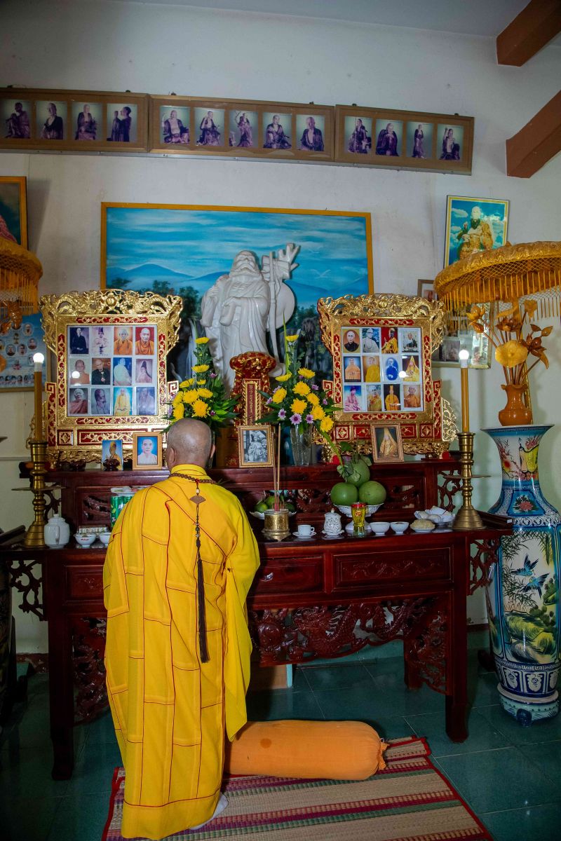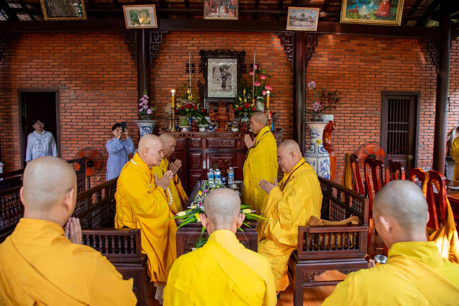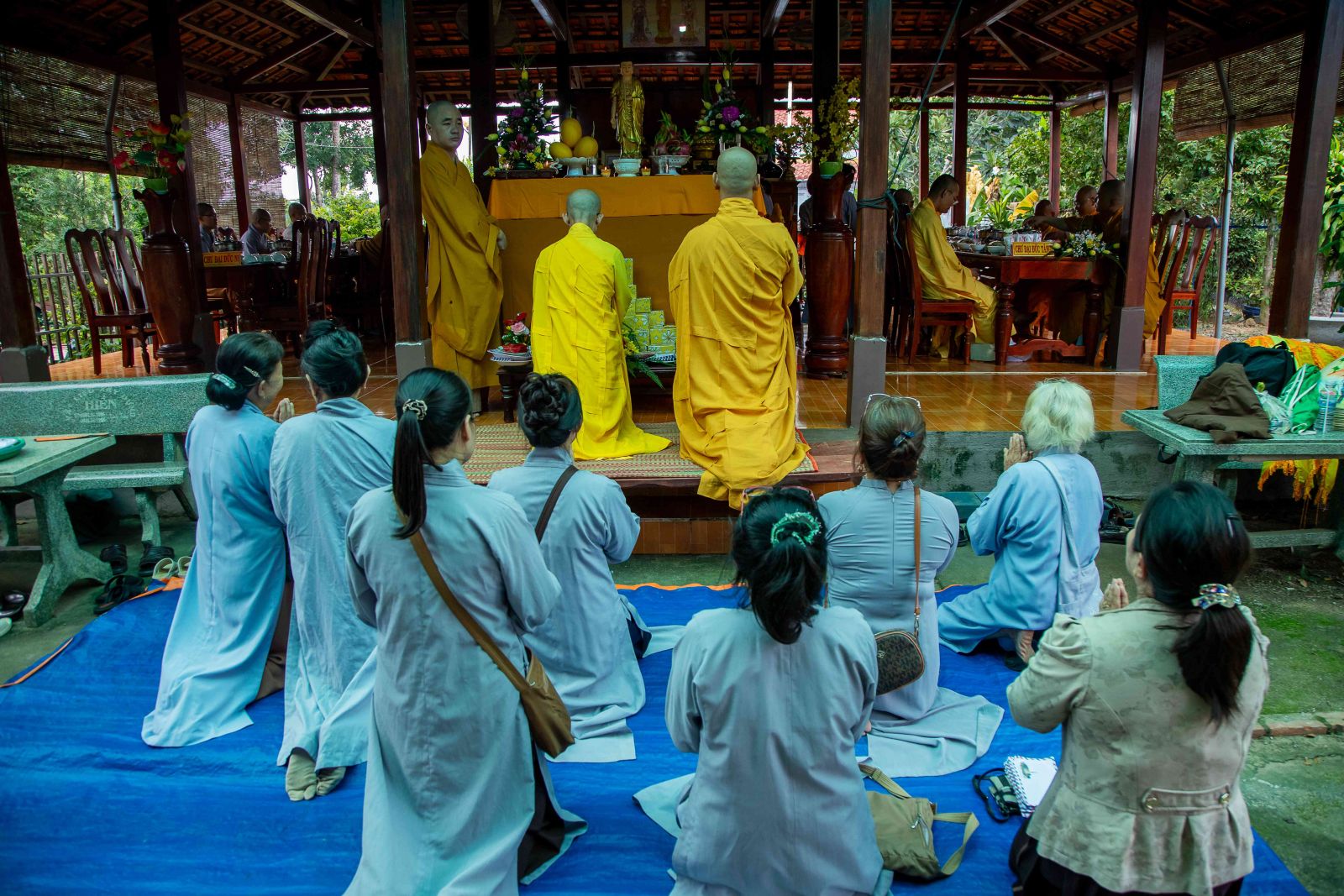 Sau đó Hòa thượng cùng quý Phật tử chùa Vân Quang thành tâm thiết lễ cúng dường trai Tăng kính mừng khánh tuế chư Tôn thiền đức Tăng Ni vừa tăng quang hạ lạp.