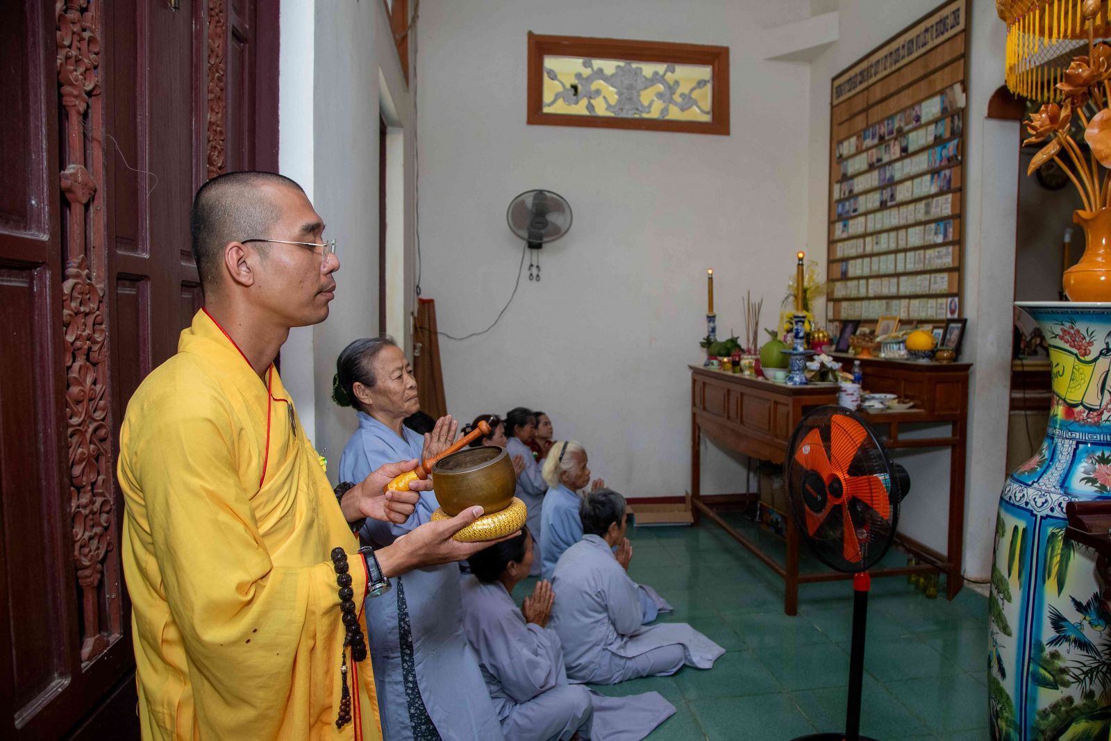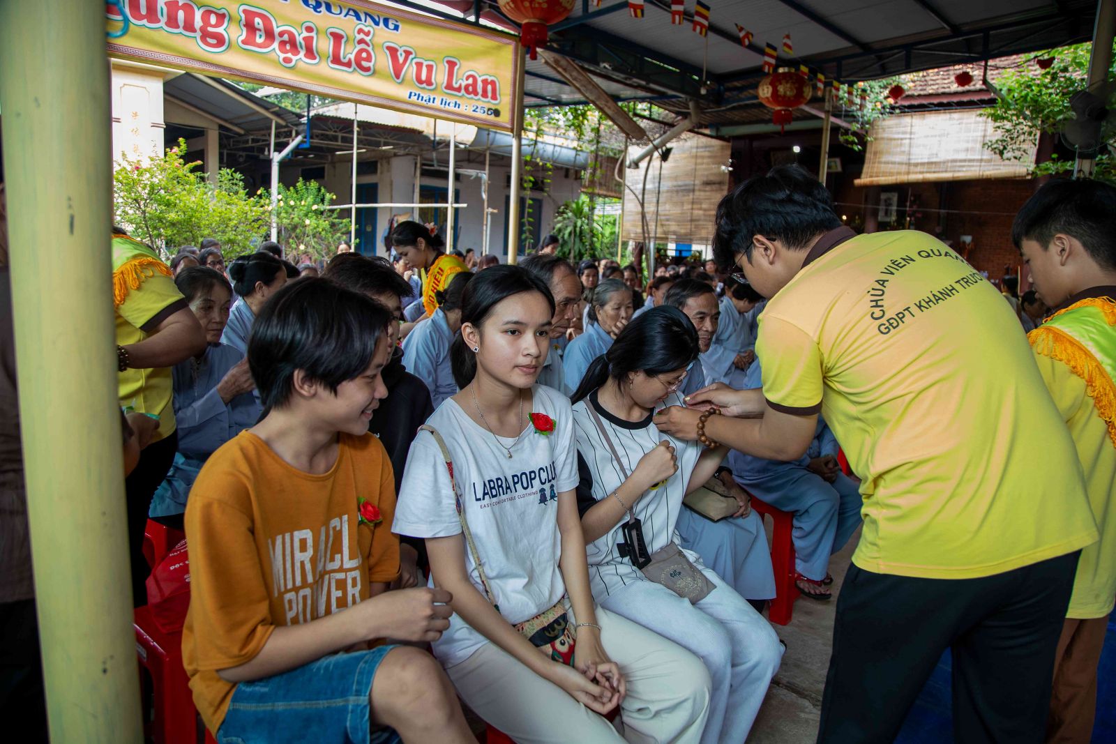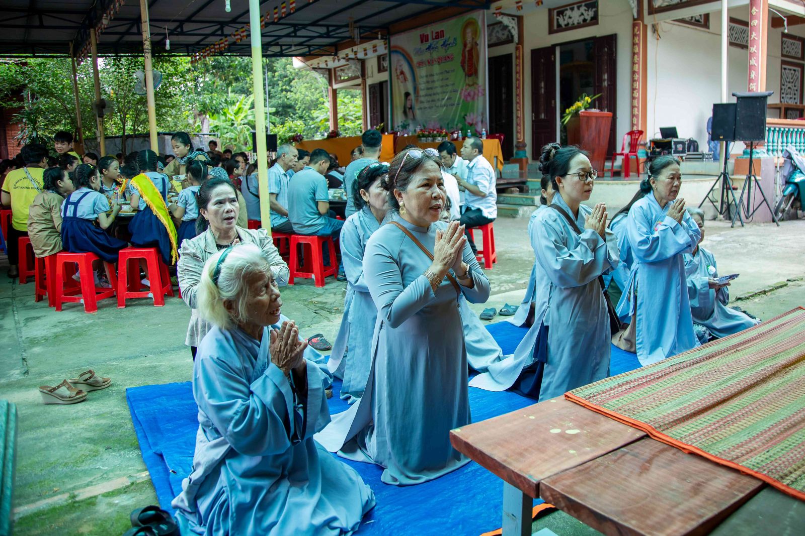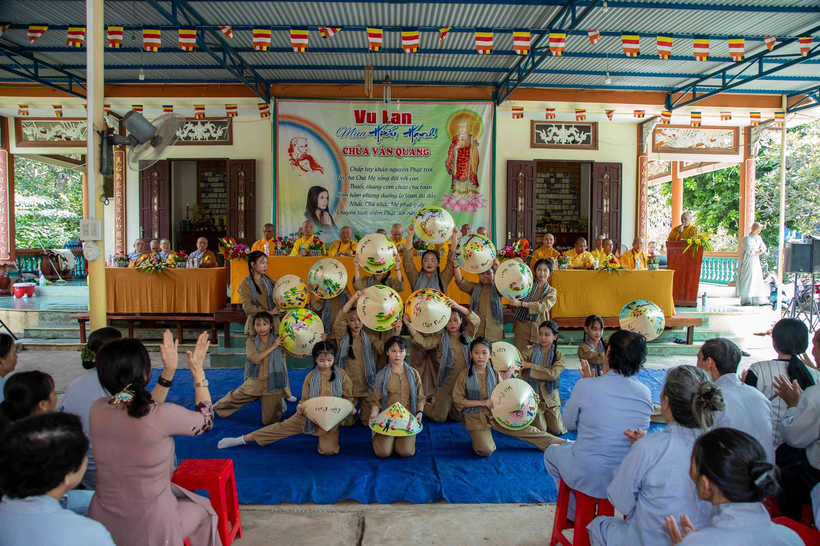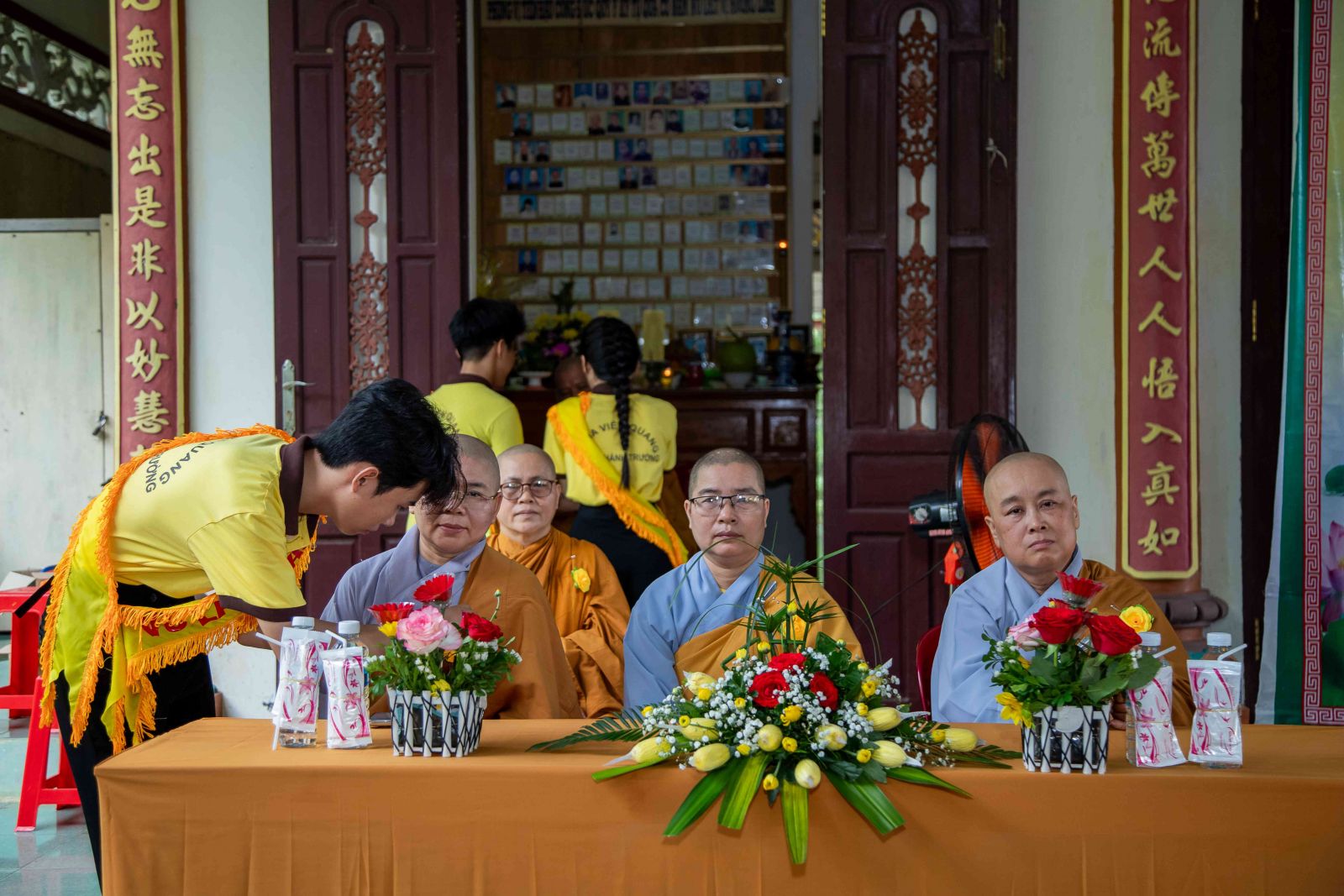Sau khi kết thúc lễ Bông hồng cài áo, Hòa thượng trụ trì đã thành tâm cung thỉnh chư Tôn tịnh đức Tăng Ni quang lâm chánh điện tác lễ Cúng ngọ Phật, Cúng tiến chư hương linh và phát nguyện phóng sanh nhân mùa Vu lan Báo hiếu nguyện cầu thế giới hòa bình, chúng sanh an lạc.