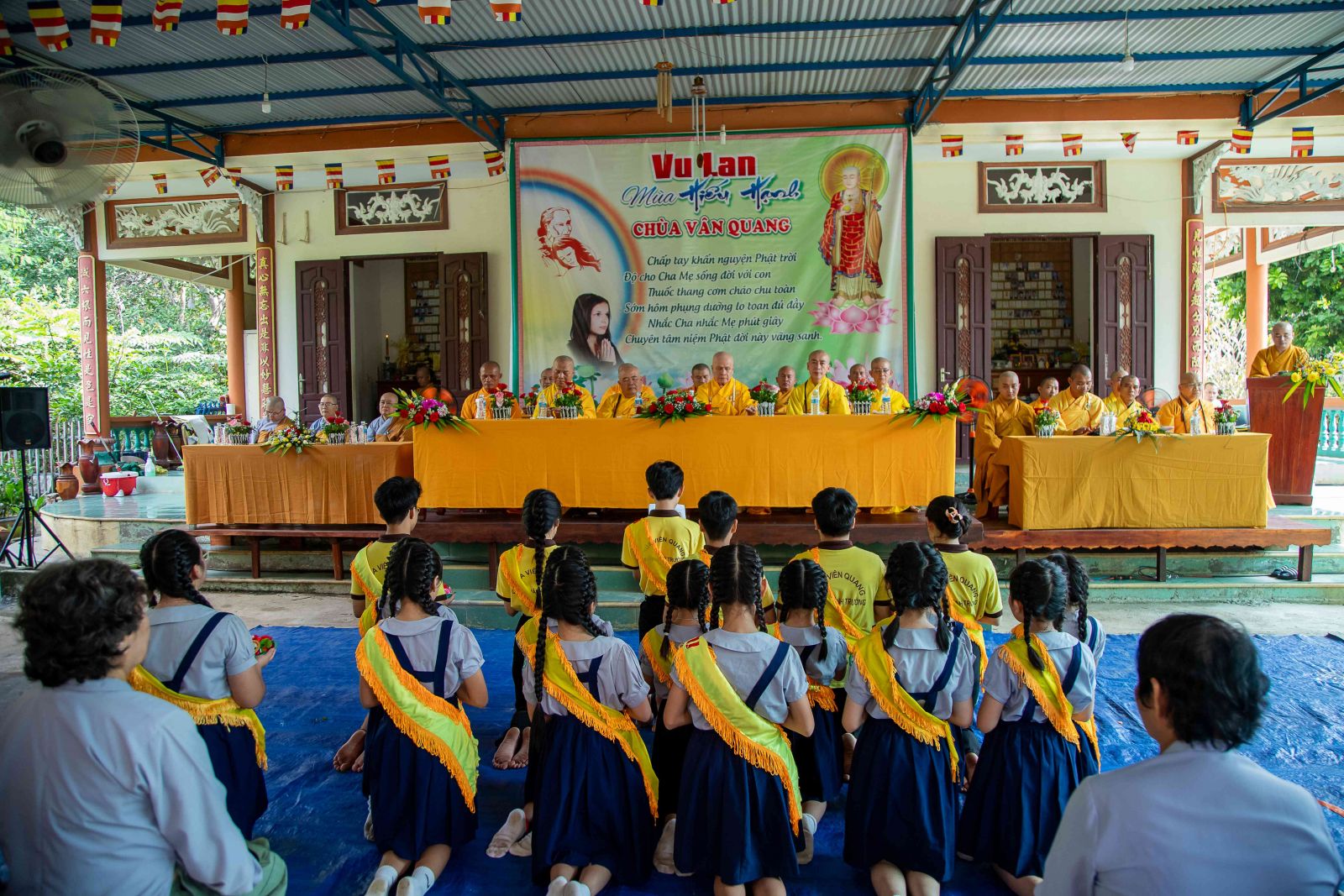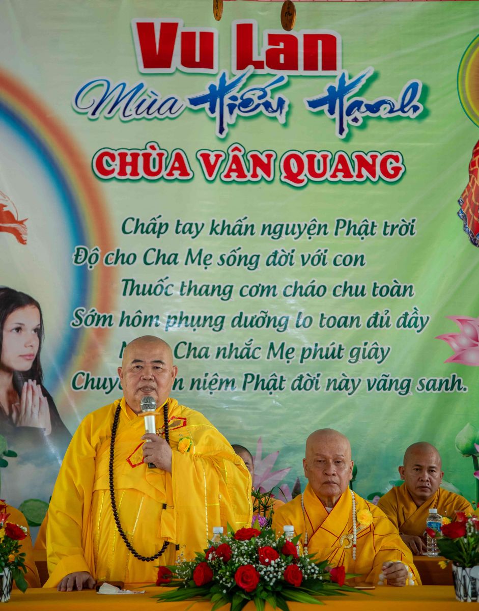 HT. Thích Tâm Minh đã thay mặt chư Tôn đức Chứng minh ban đạo từ cho buổi lễ. Ngài đã chỉ dạy: Hiếu kính cha mẹ là một truyền thống rất tốt đẹp và lâu đời của dân tộc Việt Nam chúng ta. Vì thế chúng ta là người Phật tử nói riêng và toàn thể người Việt Nam nói chung. Hiếu kính với cha mẹ là bổn phận và trách nhiệm và phải thực hành từ hình thức đến nội dung và phải thực hành suốt cả cuộc đời chứ không phải chỉ trong mùa Vu Lan.
