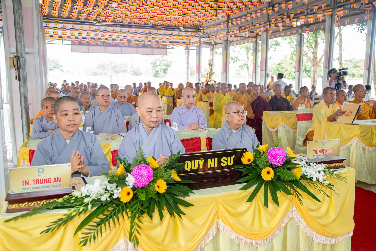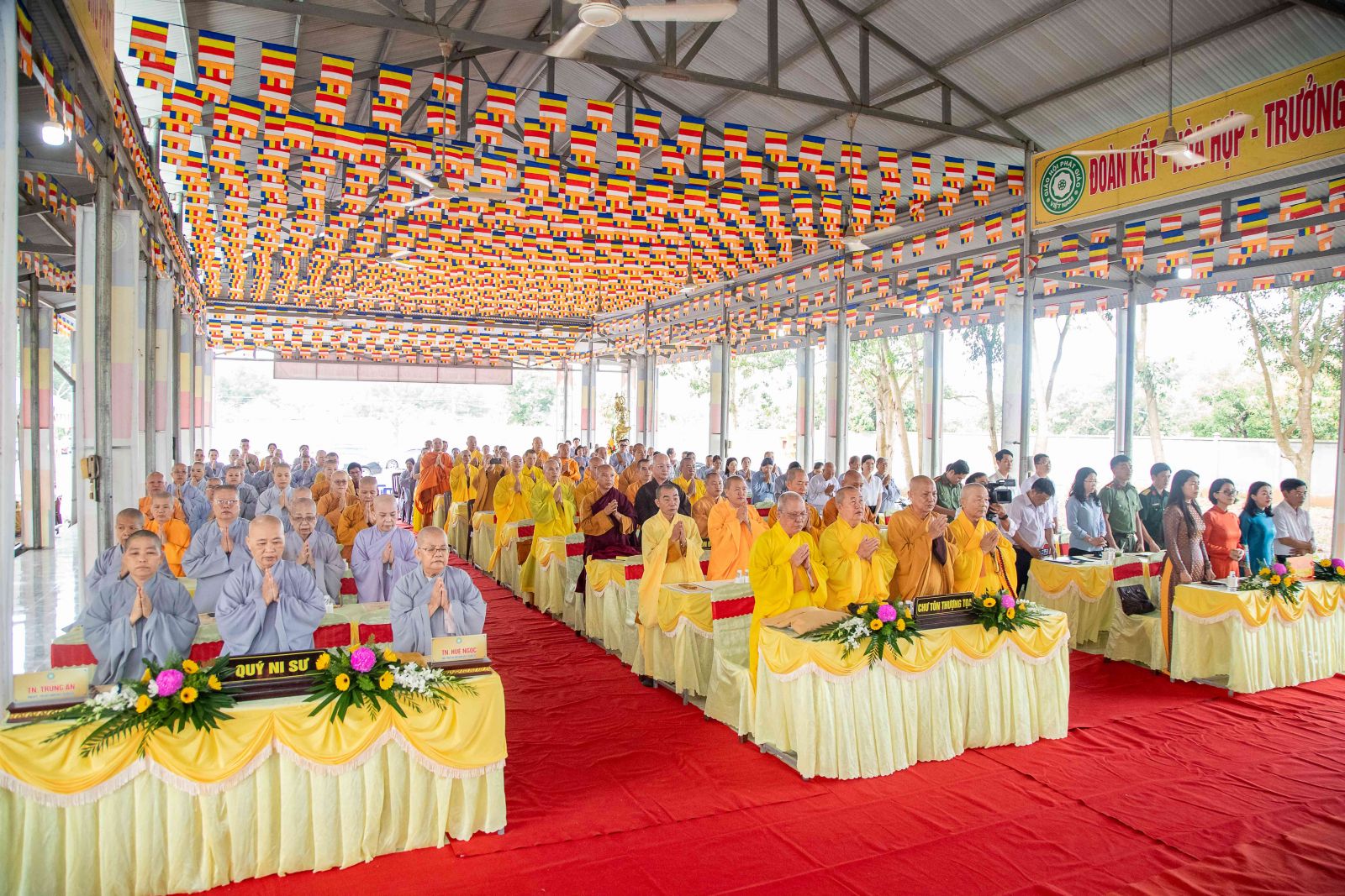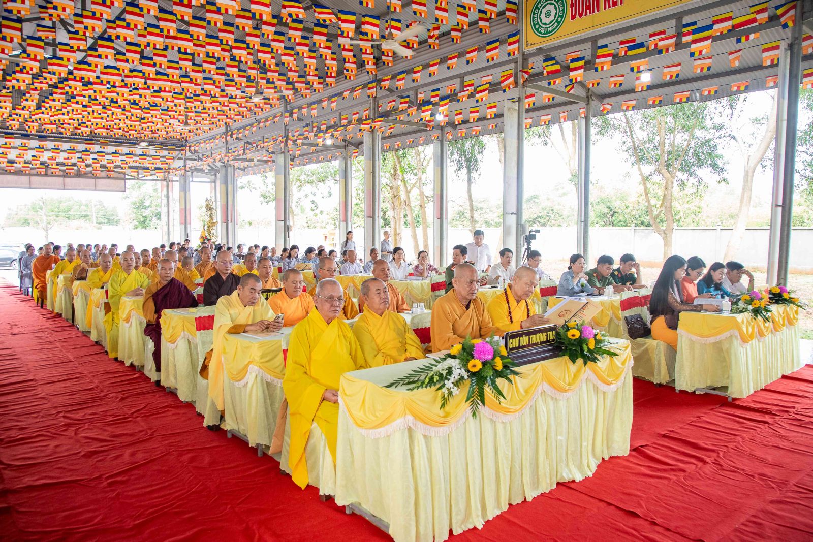 Thư ký Hội nghị có ĐĐ. Thích Huệ Trường - Phó Thư ký, Chánh VP BTS GHPGVN huyện; ĐĐ. Thích Trung Điền - UV BTS GHPGVN tỉnh, Phó Thư ký BTS, Trưởng Ban TT-XH GHPGVN huyện.