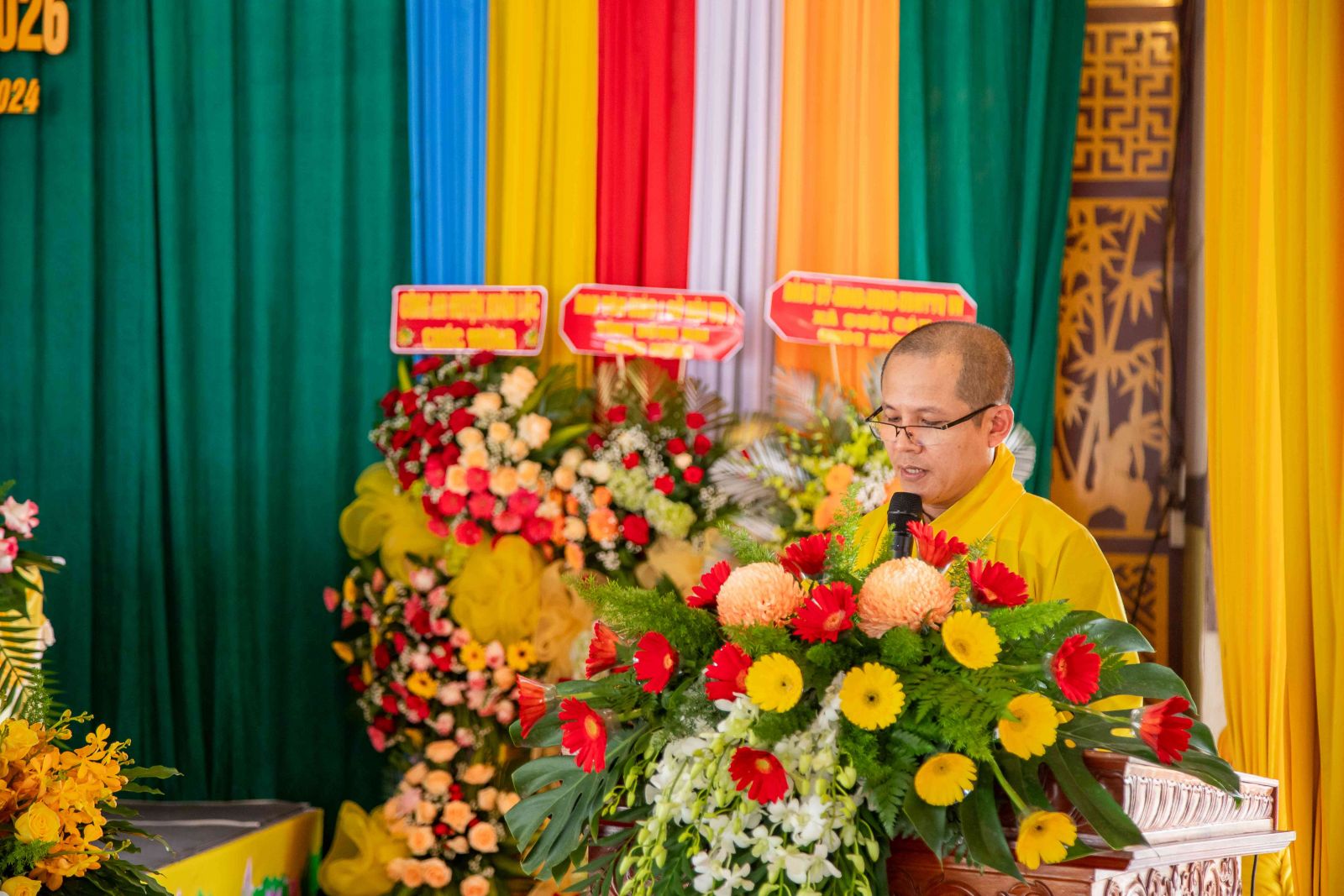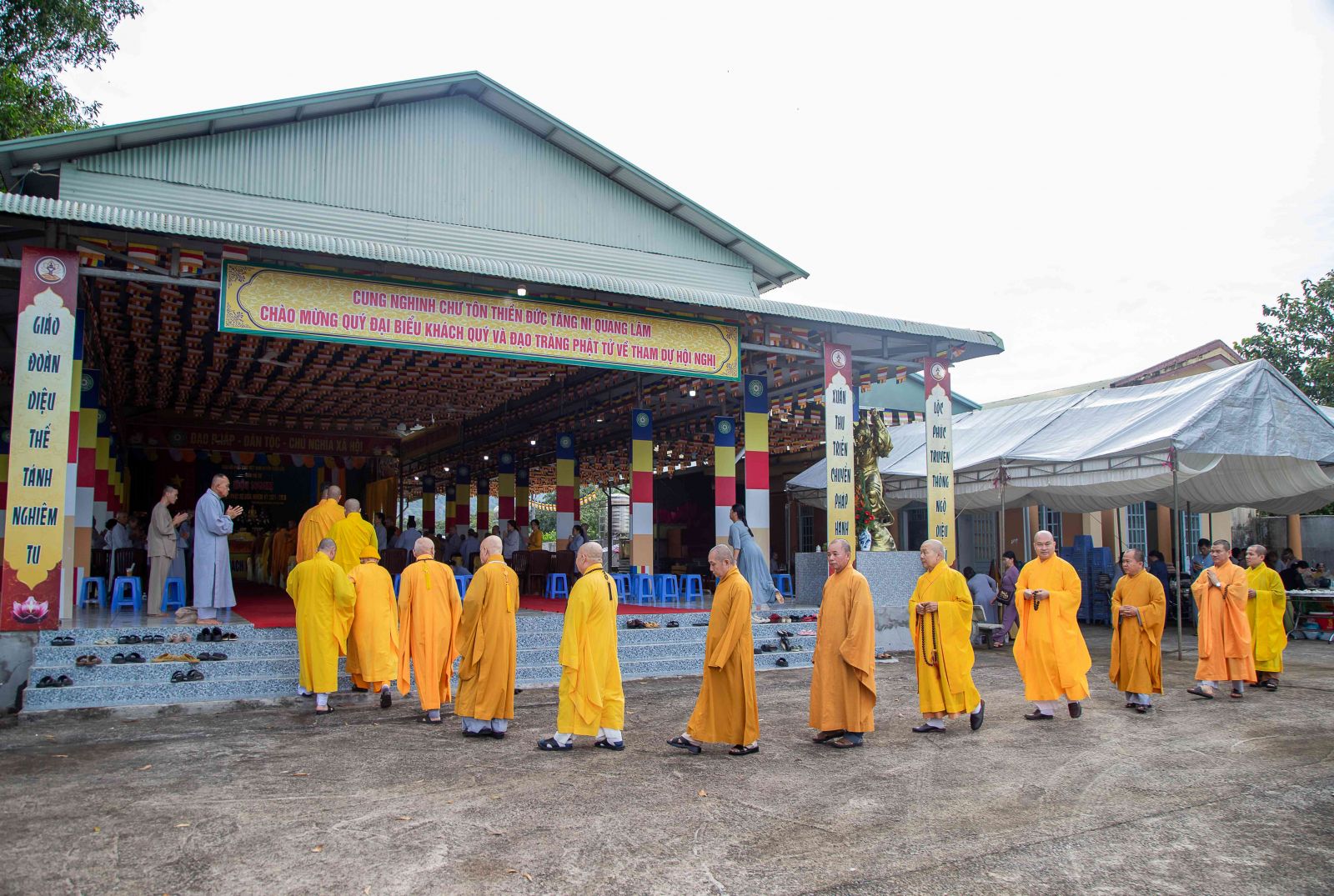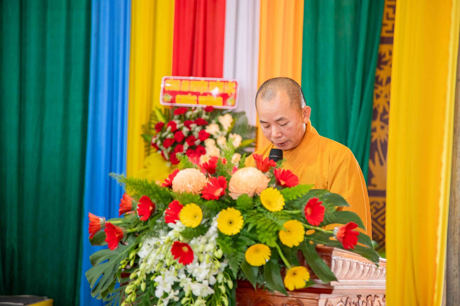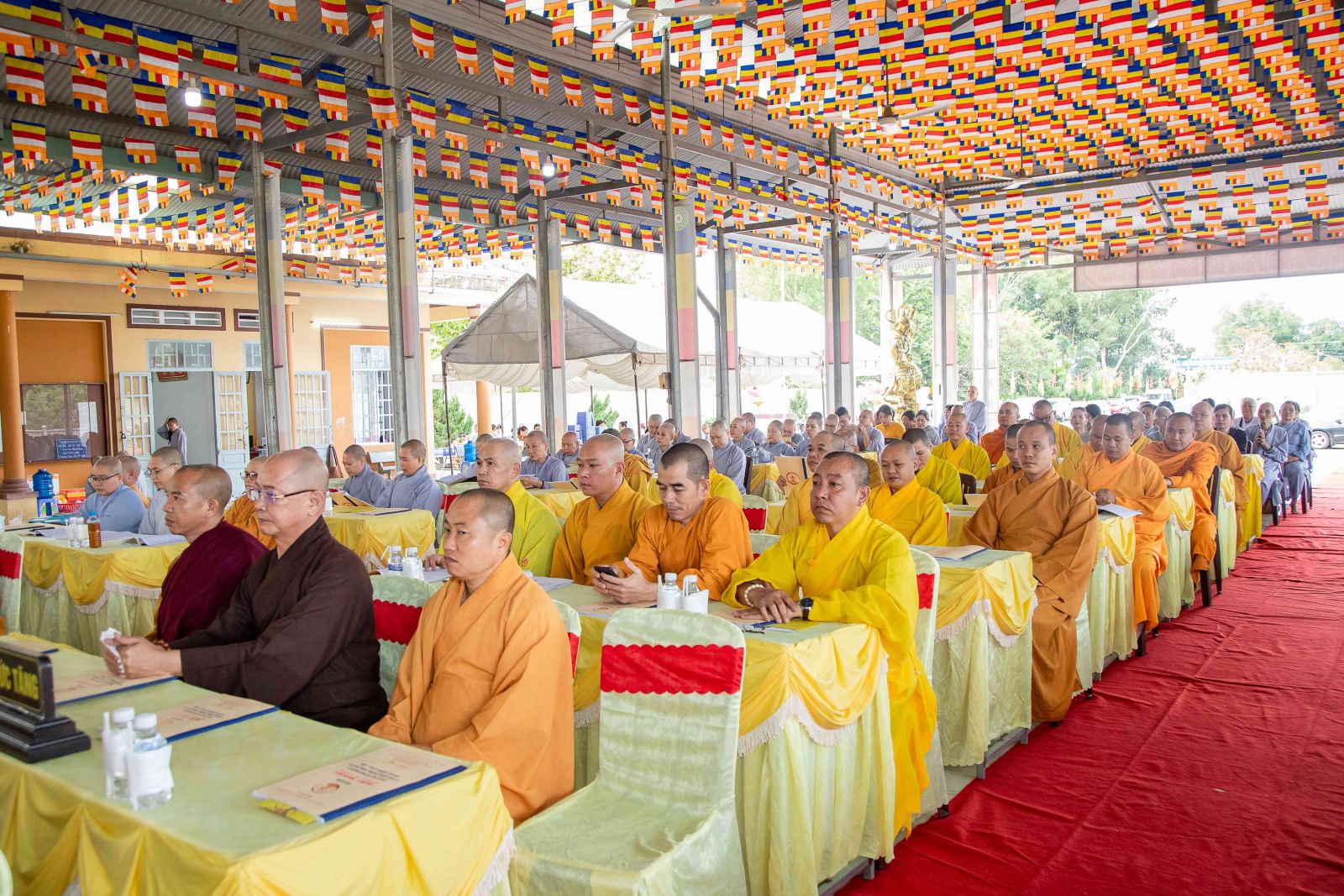 Thư ký Hội nghị có ĐĐ. Thích Huệ Trường - Phó Thư ký, Chánh VP BTS GHPGVN huyện; ĐĐ. Thích Trung Điền - UV BTS GHPGVN tỉnh, Phó Thư ký BTS, Trưởng Ban TT-XH GHPGVN huyện.