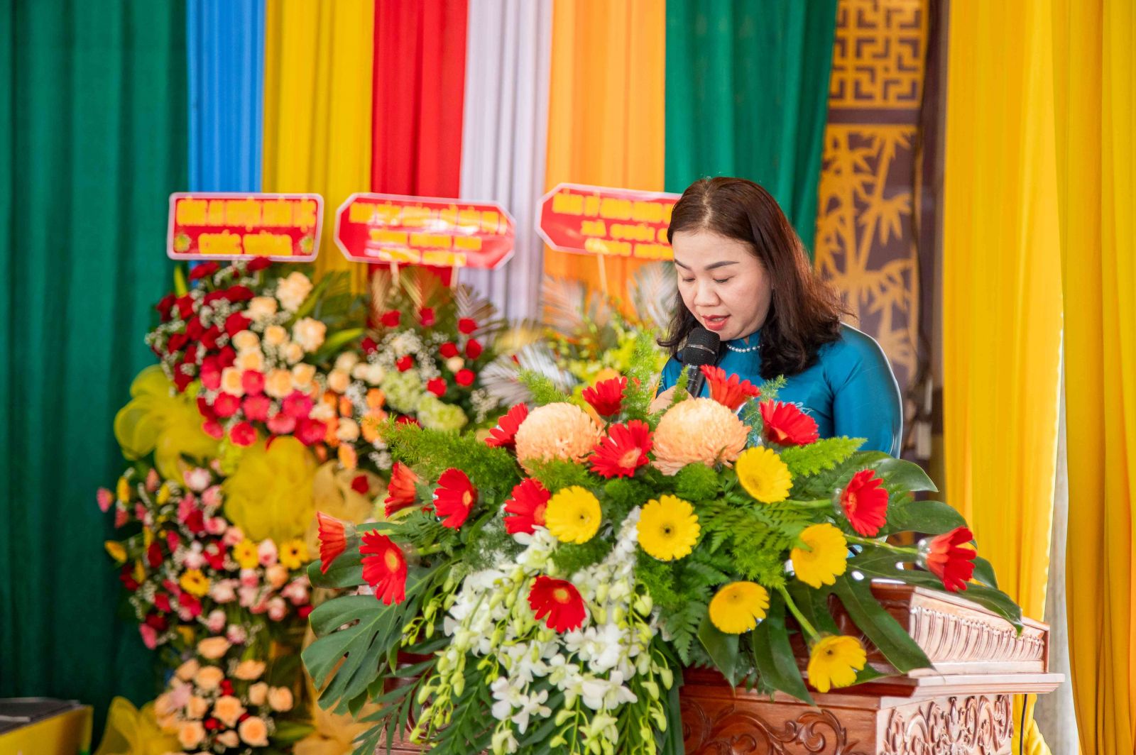 Đại diện lãnh đạo Chính quyền bà Lê Thị Hiệp - HUV, Chủ tịch UBMTTQVN huyện đã có bài phát biểu tại Hội nghị. Bà ghi nhận và biểu dương những thành tựu Phật sự trong nửa đầu nhiệm kỳ của toàn Giáo hội và các tự viện cũng như chư Tăng Ni. Đặc biệt là ghi nhận và cảm ơn công tác từ thiện đã góp phần trong công tác an sinh xã hội tại huyện Xuân Lộc. Bà cũng mong rằng với tinh thần Đạo pháp - Dân tộc Giáo hội huyện sẽ ngày càng phát triển bền vững hơn trong tinh thần của Giáo luật và Pháp luật. Bà cũng báo cáo sơ lược về tình hình kinh tế xã hội của huyện Xuân Lộc trong năm 2024, tuy do ảnh hưởng chung của nền kinh tế nhưng tại huyện Xuân Lộc vẫn tăng trưởng về kinh tế và giữ vững sự ổn định xã hội.