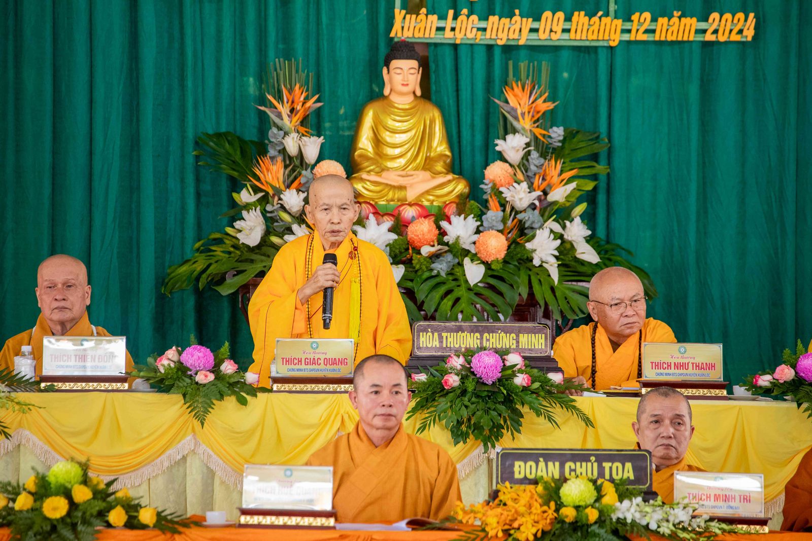 Chứng minh Hội nghị có HT. Thích Tâm Minh - Phó BTS GHPGVN tỉnh, Chứng minh BTS GHPGVN huyện; HT. Thích Giác Quang, HT. Thích Như Thanh, HT. Thích Thiện Đồng đồng chứng minh BTS GHPGVN huyện. Chủ tọa Hội nghị có TT. Thích Minh Trì - Phó BTS GHPGVN tỉnh; ĐĐ. Thích Thiện Trí - Phó Thư ký, Chánh Văn phòng BTS GHPGVN tỉnh; TT. Thích Huệ Quang - UV BTS GHPGVN tỉnh, Trưởng BTS GHPGVN huyện; ĐĐ. Thích Huệ Thới - UV BTS tỉnh, Phó Văn phòng BTS GHPGVN tỉnh; ĐĐ. Thích Quảng Vinh - Phó BTS, Trưởng Ban Pháp chế GHPGVN huyện.