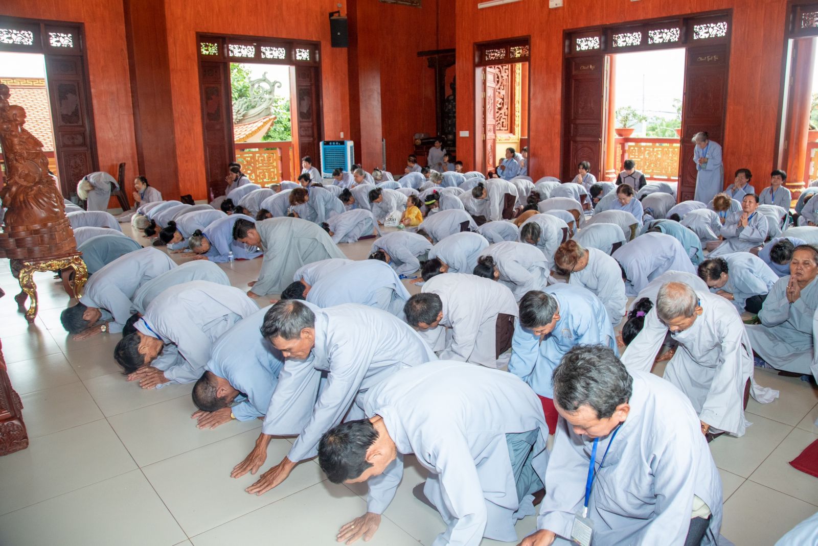 Nhân tháng Sáu kỷ niệm ngày vía Bồ Tát Quán Thế Âm, chư Tôn đức Tăng cùng đạo tràng Phật tử đã thành kính đảnh lễ Ngũ Bách Danh, tụng kinh Phổ Môn cầu nguyện thế giới hòa bình, chúng sanh an lạc. Tại Giảng đường Đại đức trụ trì đã làm lễ quy y Tam Bảo cho các thiện tín phát tâm quy y trở thành người đệ tử tại gia của Đức Phật.