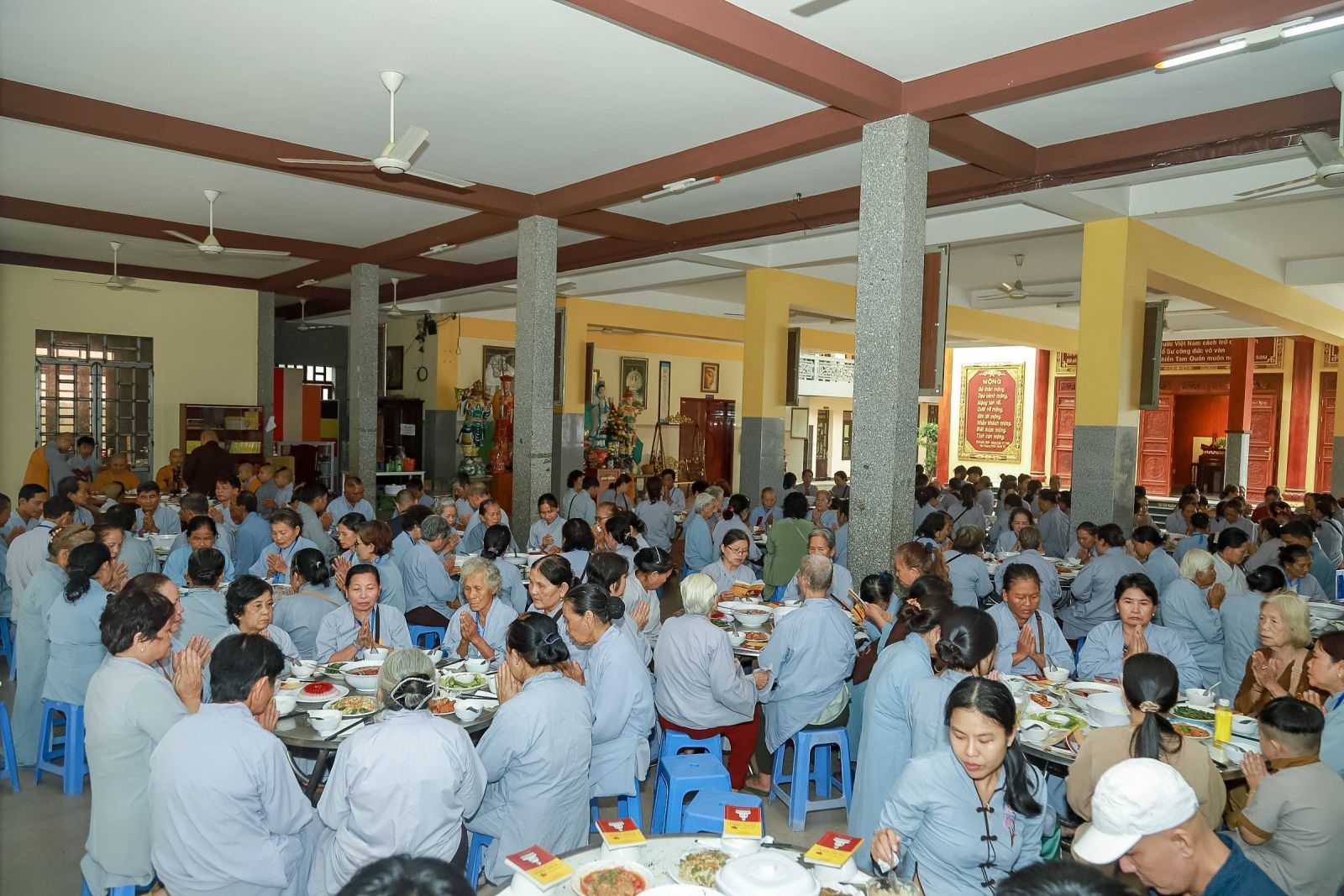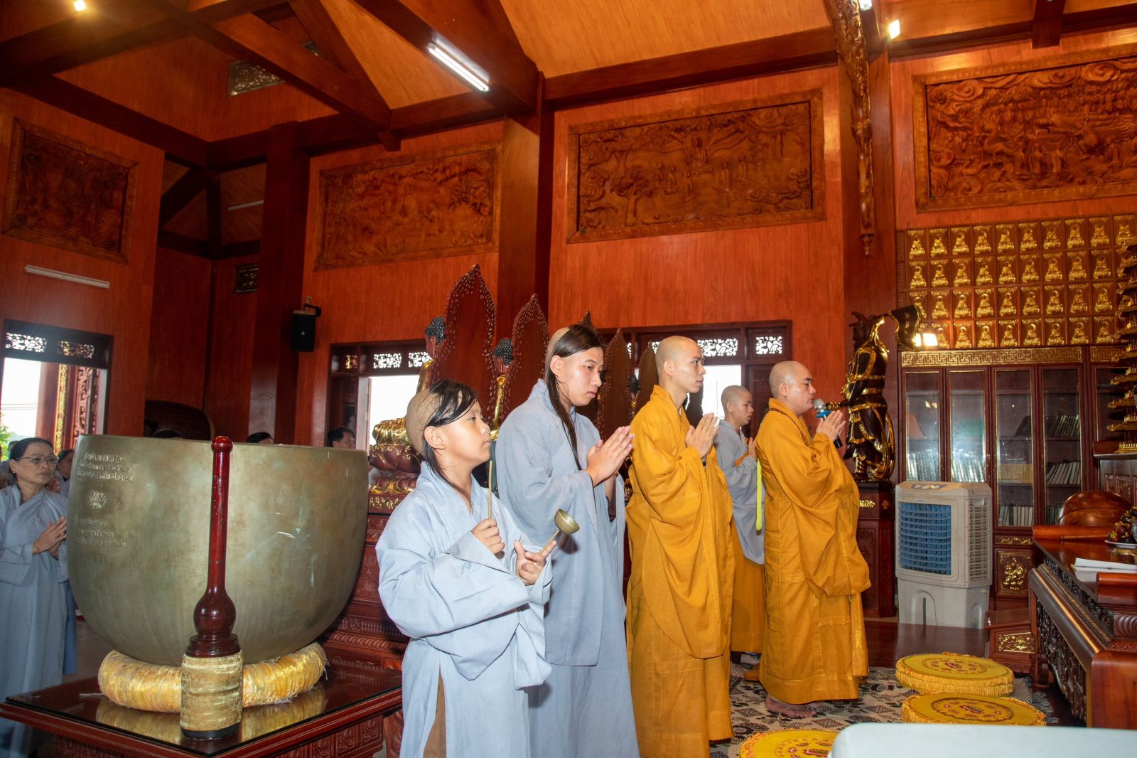 Vào lúc 07h30’ sau khi dùng điểm tâm sáng xong, cả hội chúng vân tập về tại Đại Hùng Bửu Điện để cung đón Đại đức trụ trì cùng Tăng chúng bổn tự niêm hương khai khóa tu học và bắt đầu ngày tu.