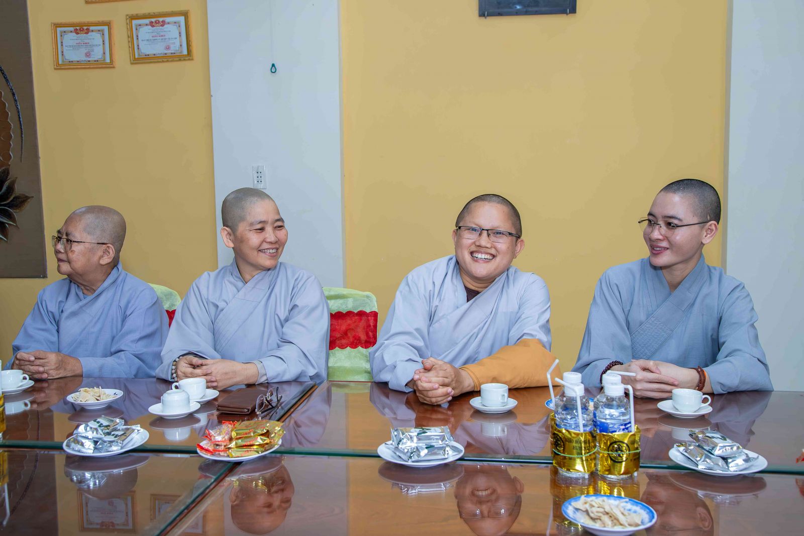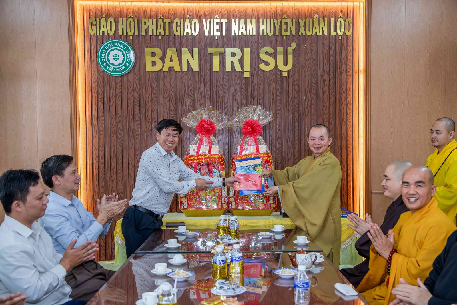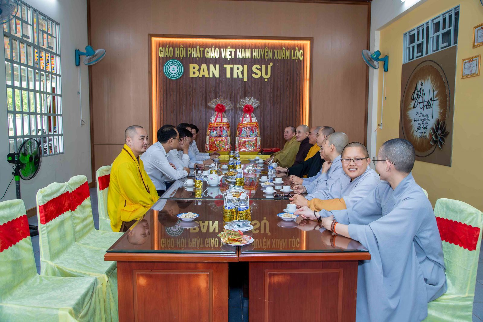 Tiếp đón đoàn Ban Tôn giáo tỉnh có TT. Thích Huệ Quang - UV BTS GHPGVN tỉnh, Trưởng BTS GHPGVN huyện; ĐĐ. Thích An Quang - UV BTS GHPGVN tỉnh, Chánh Thư ký BTS GHPGVN huyện; NS. TN Huệ Ngọc - Đặc trách Ni giới GHPGVN huyện cùng chư Tôn đức Tăng Ni BTS GHPGVN huyện Xuân Lộc.