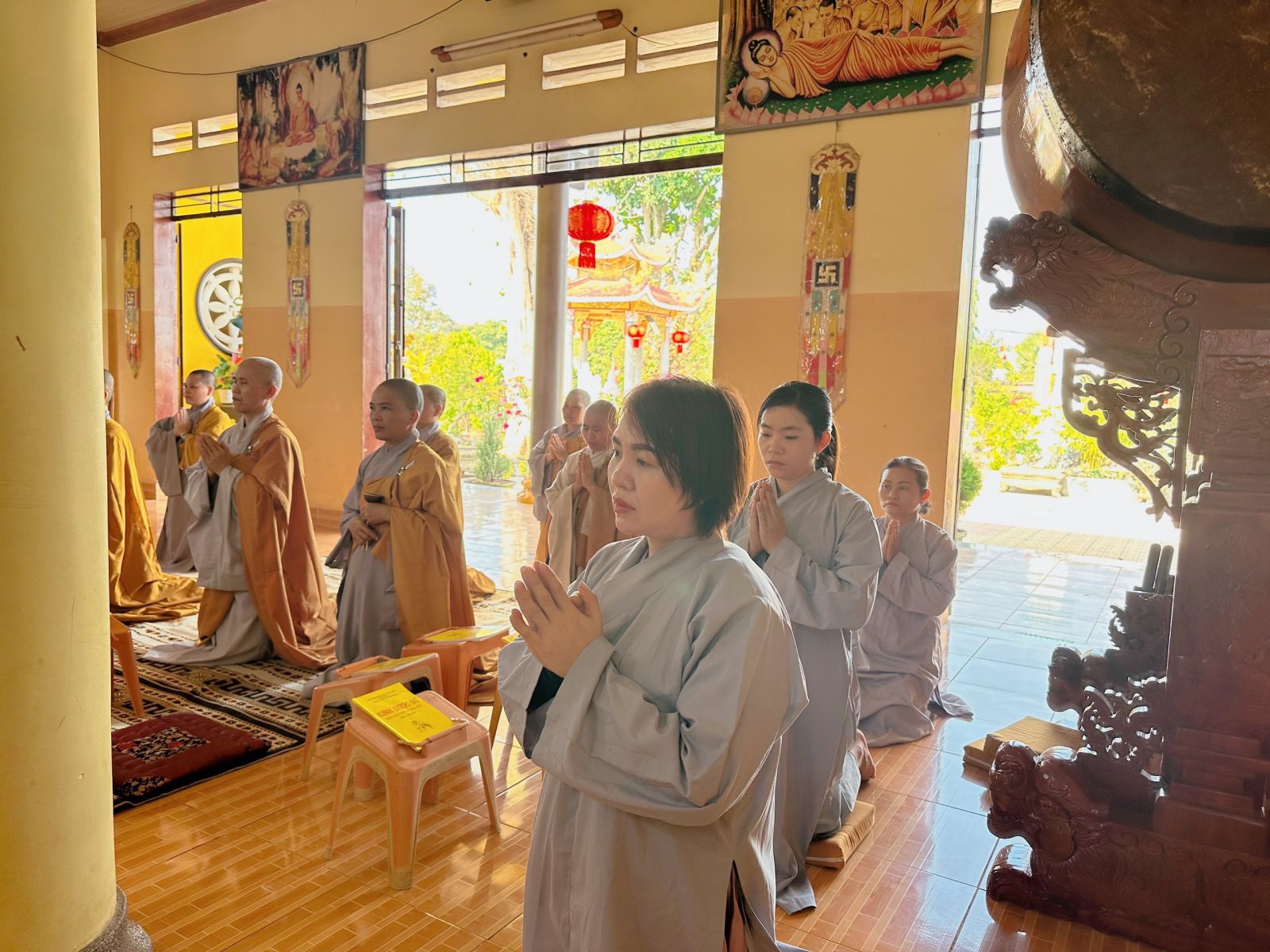 Trong không khí trang nghiêm của buổi lễ, sau ba hồi chuông trống Bát-nhã, NS. Thích Nữ Huệ Ngọc - Đặc trách Ni giới GHPGVN huyện Xuân Lộc, Trụ trì chùa Viên Thông cùng chư Ni trong huyện đã niêm hương bạch Phật, tác lễ khai đàn Dược Sư, trì tụng danh hiệu Đức Dược Sư Lưu Ly Quang Vương Phật cầu nguyện an lành, hồi hướng lợi lạc đến với tất cả nam nữ Phật tử, giúp cho mọi người chuyển hóa khổ đau, được sống yên vui hạnh phúc.