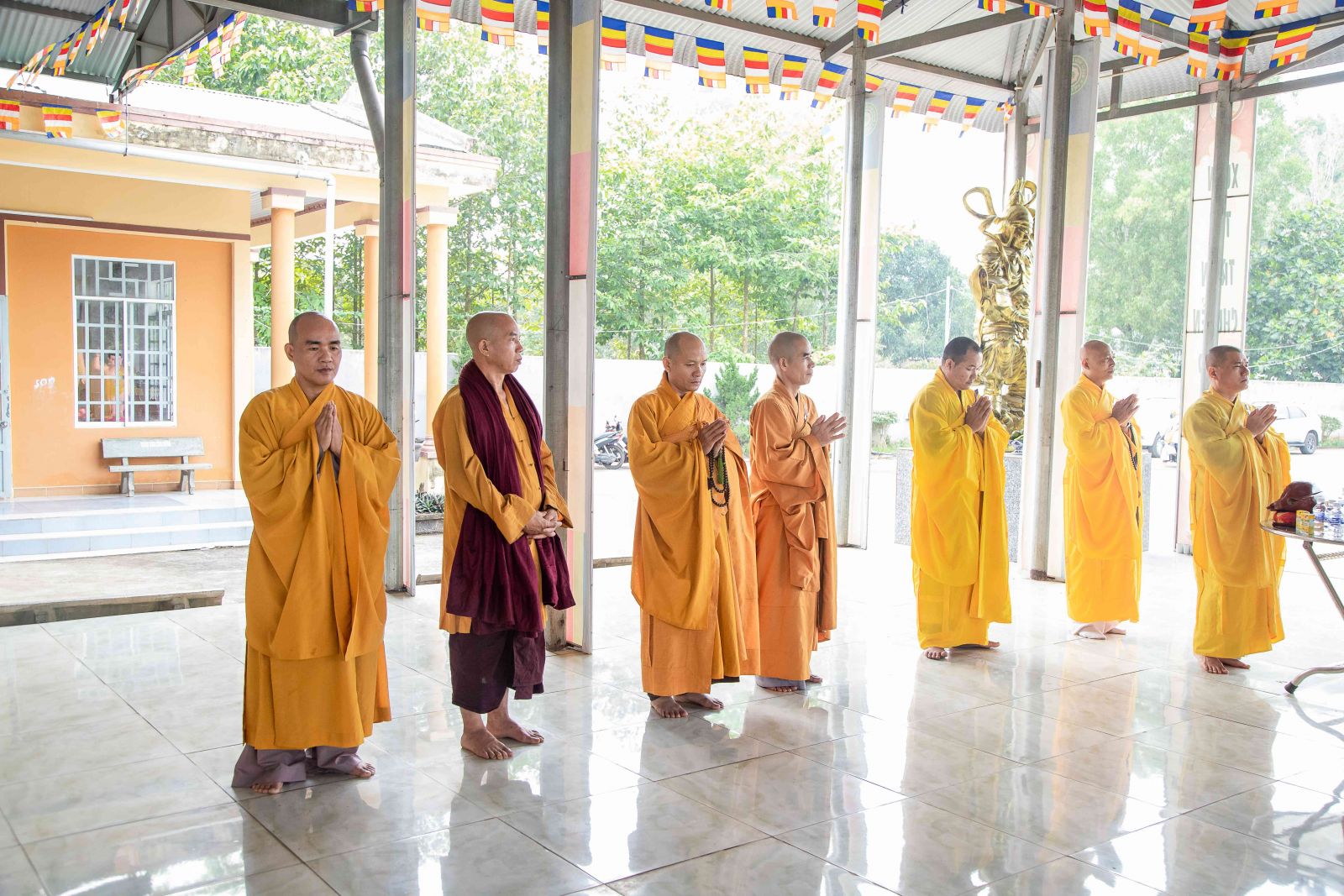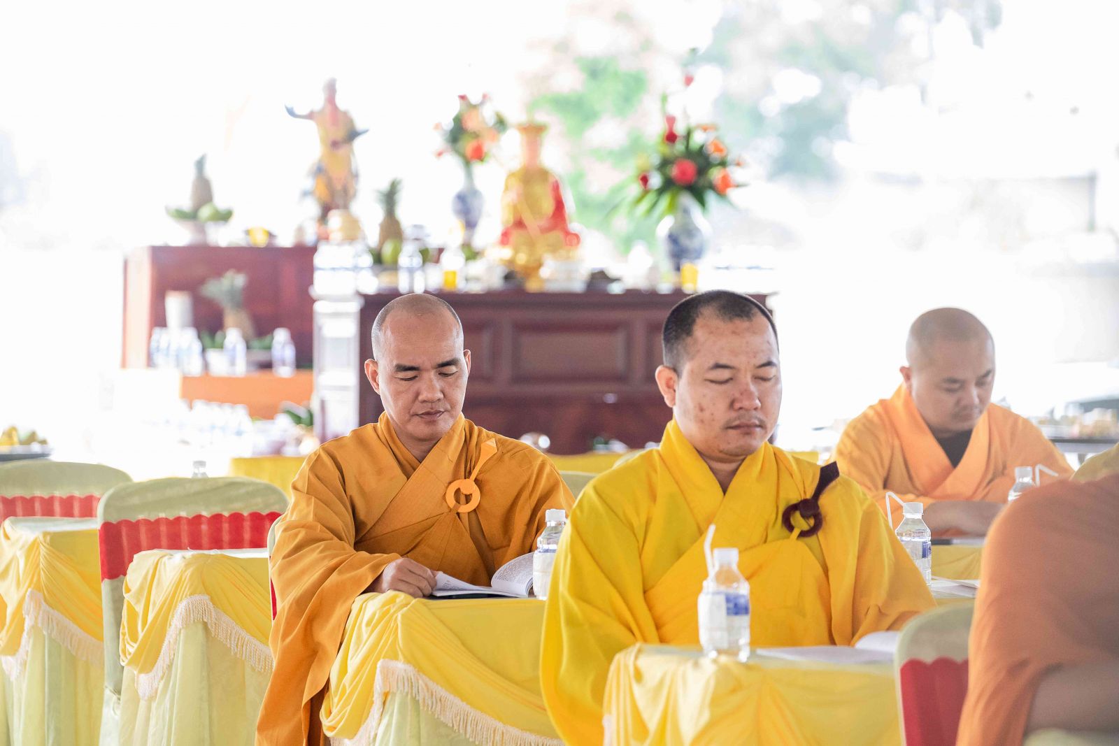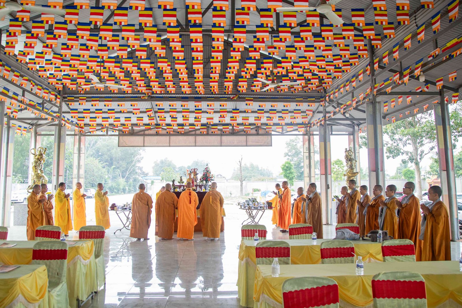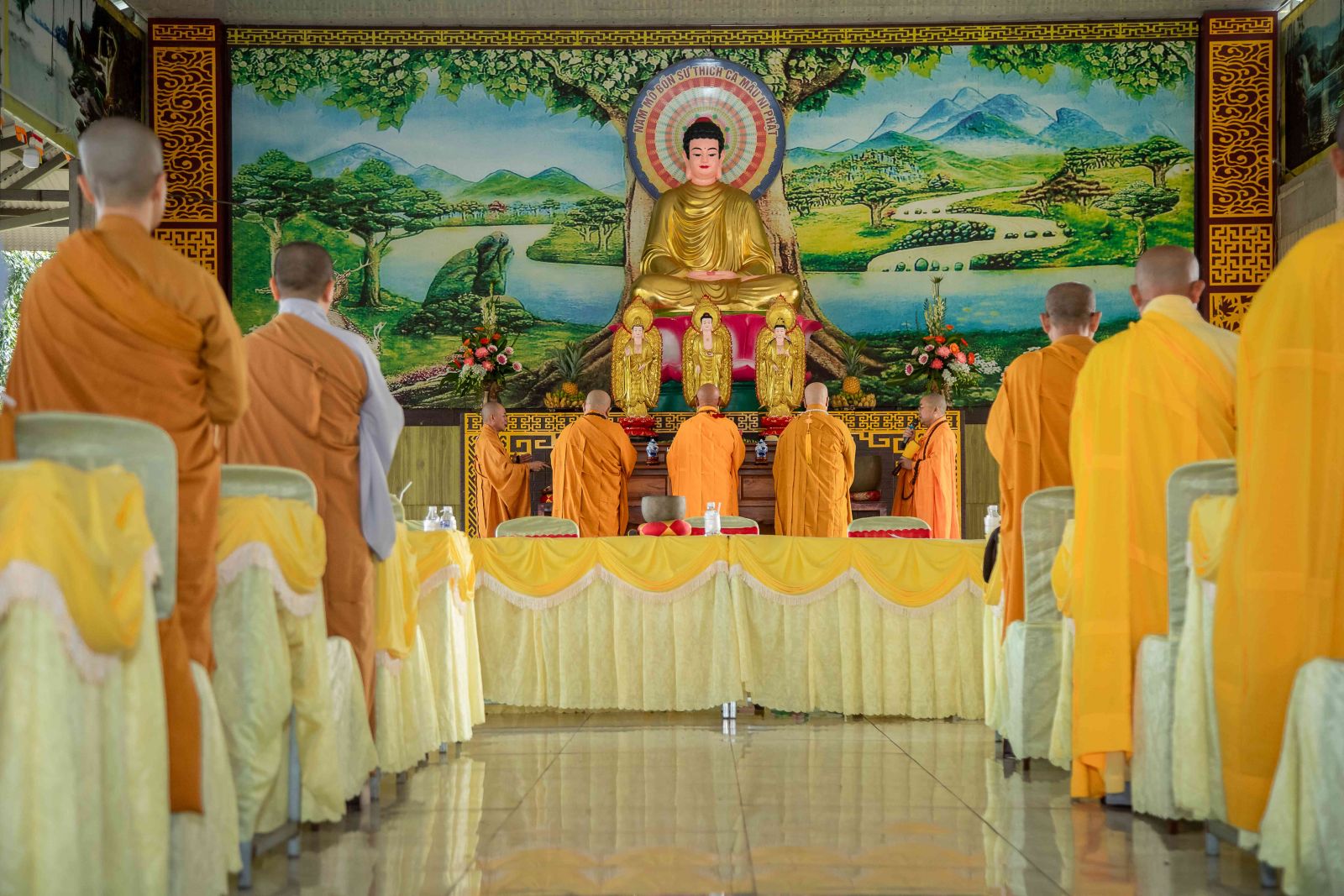 Tại Chánh điện, chư Tôn giáo phẩm Chứng minh BTS GHPGVN huyện niêm hương bạch Phật; toàn thể đại chúng thành kính đảnh lễ Tam bảo, thực hiện nghi thức Yết-ma Bố-tát, tụng giới.