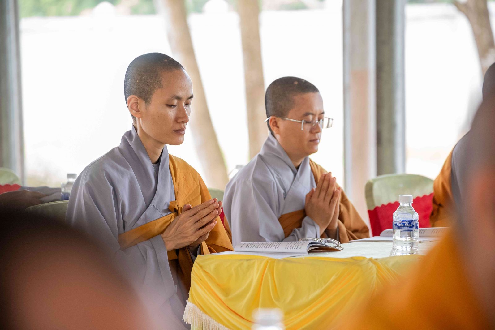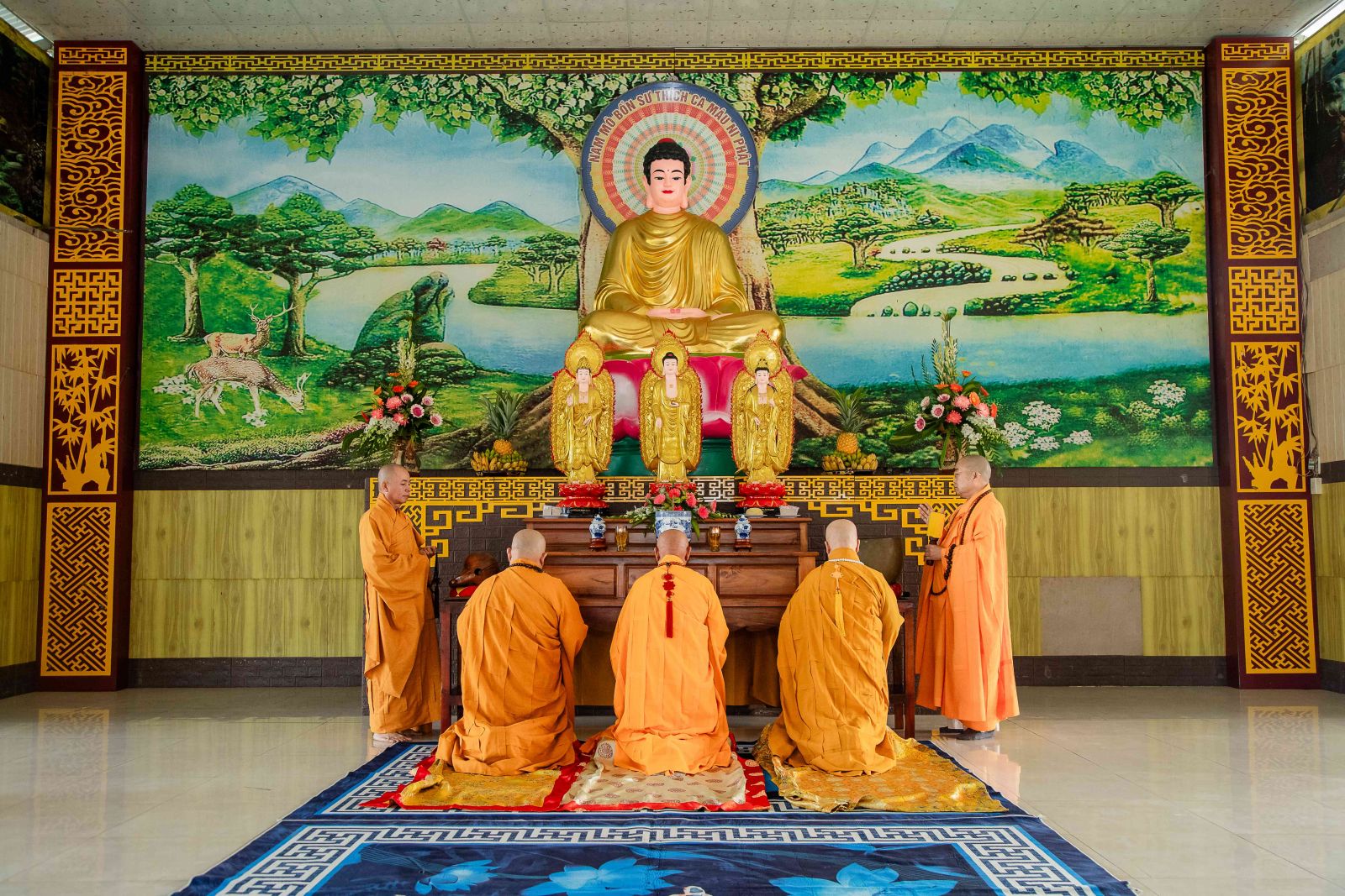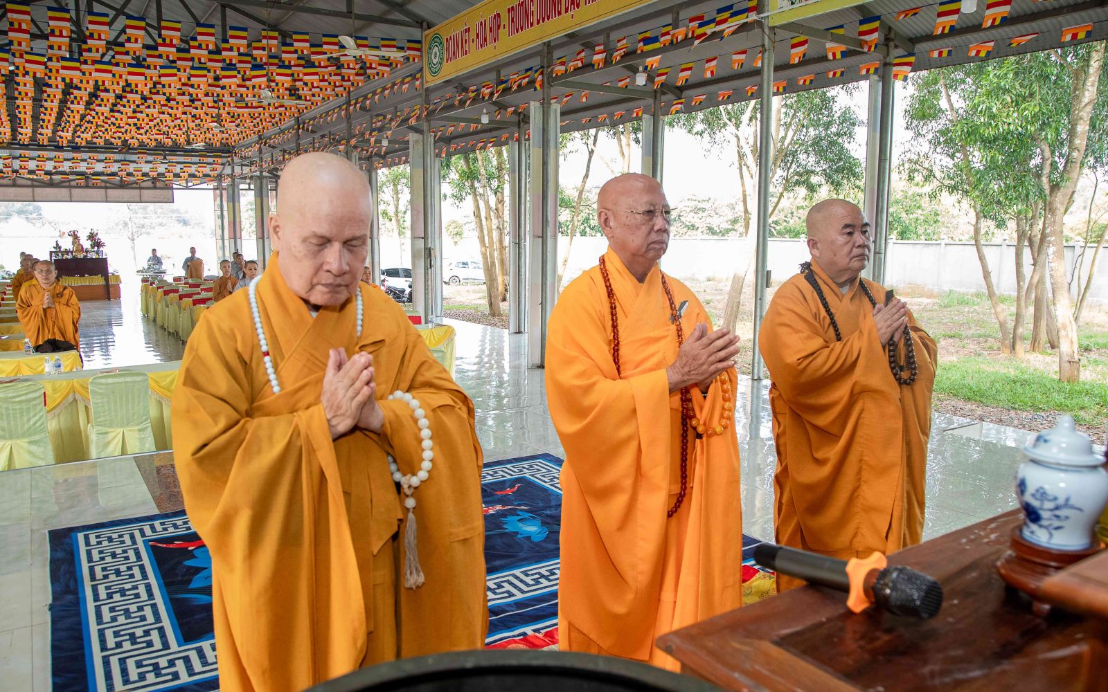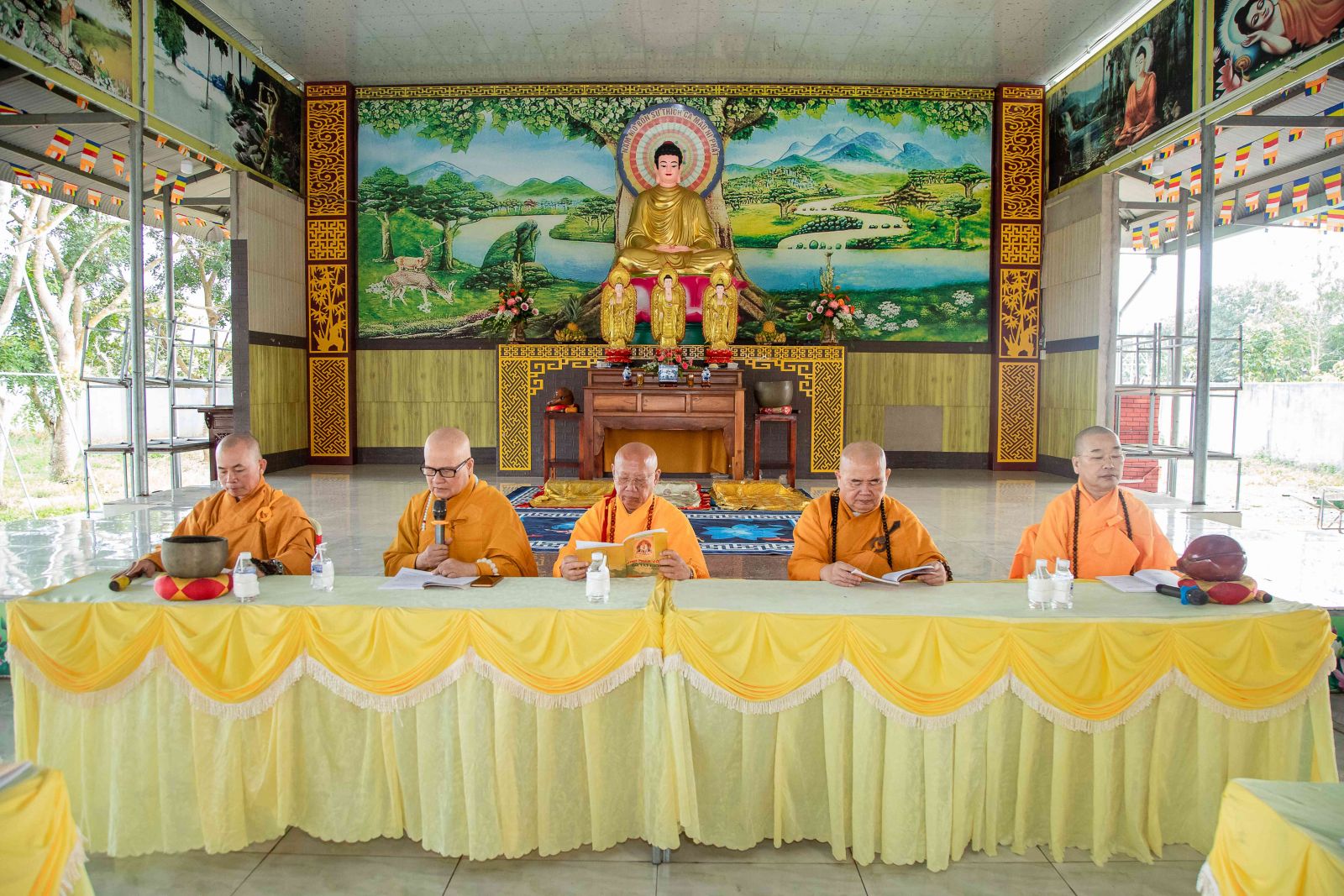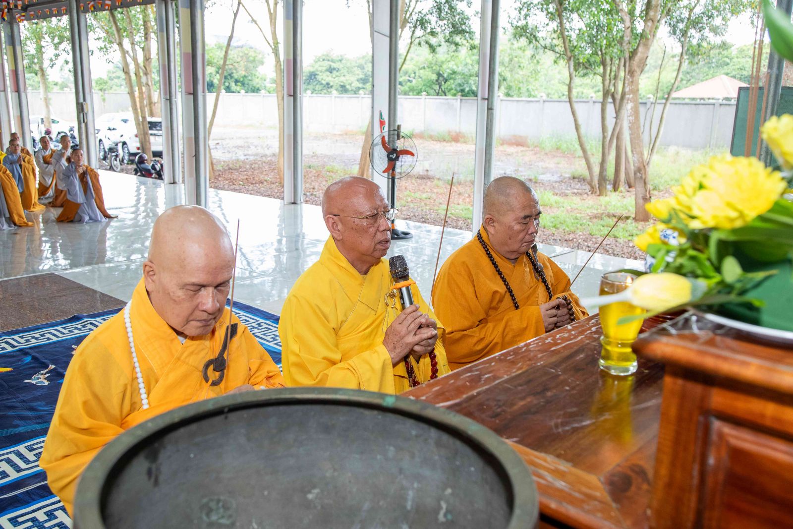Tại Chánh điện, chư Tôn giáo phẩm Chứng minh BTS GHPGVN huyện niêm hương bạch Phật; toàn thể đại chúng thành kính đảnh lễ Tam bảo, thực hiện nghi thức Yết-ma Bố-tát, tụng giới.