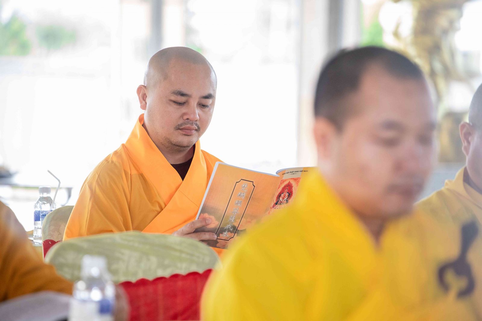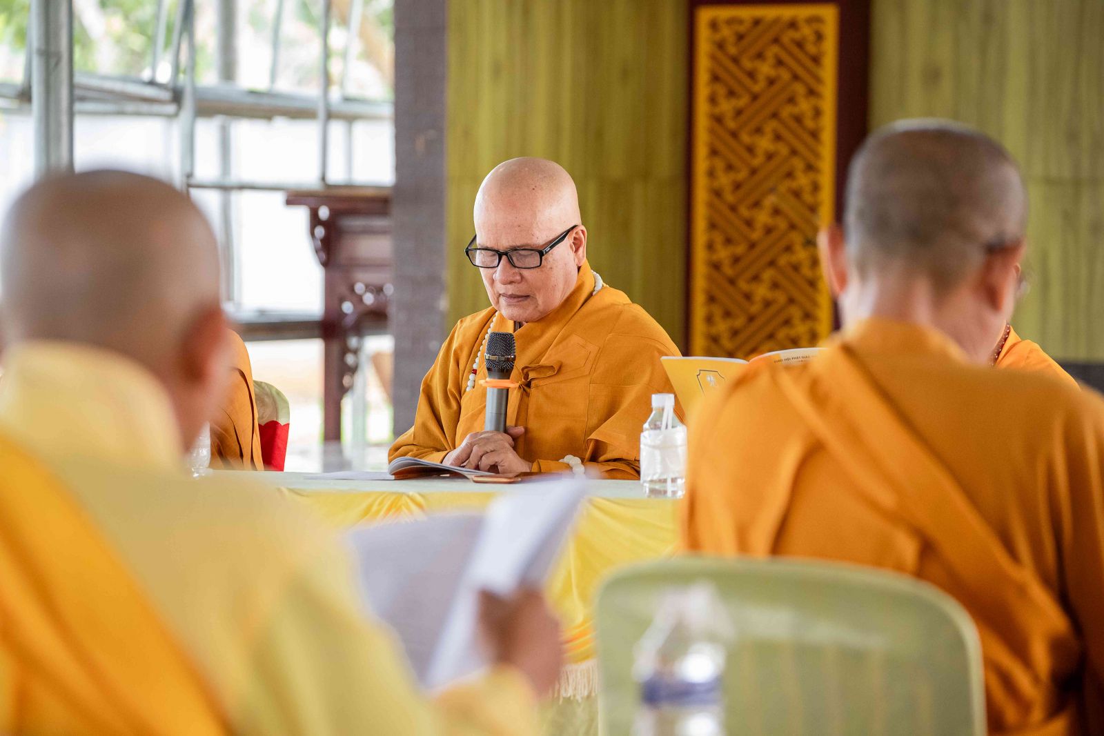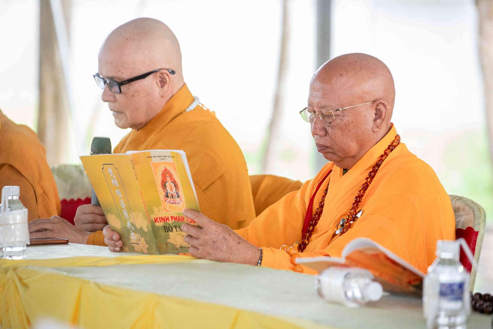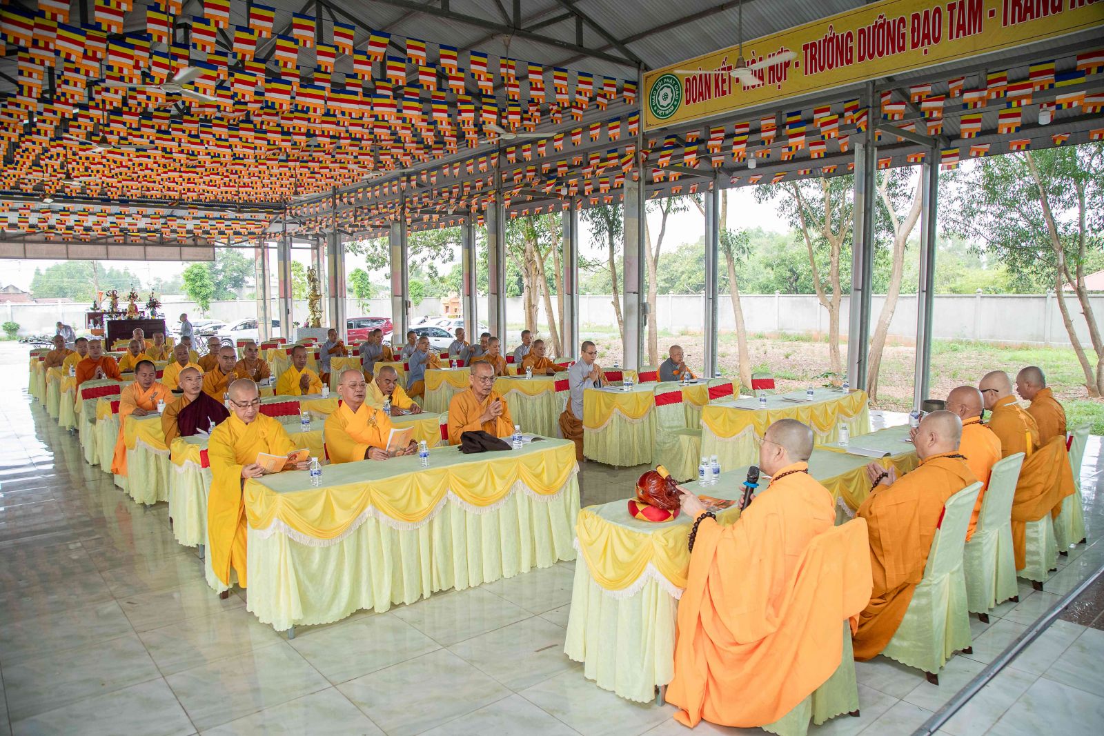 Kỳ Bố-tát hàng tháng ngoài mùa An cư kiết hạ nên chư Tôn đức Tăng Ni đồng lắng nghe HT. Thích Thiện Đồng trùng tuyên Kinh Phạm Võng Bồ Tát giới.