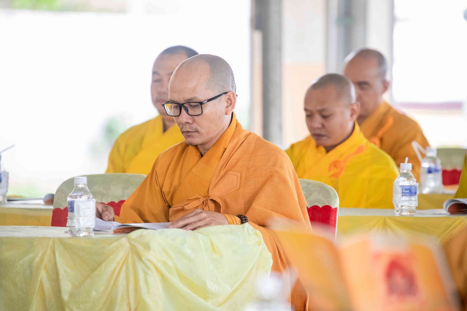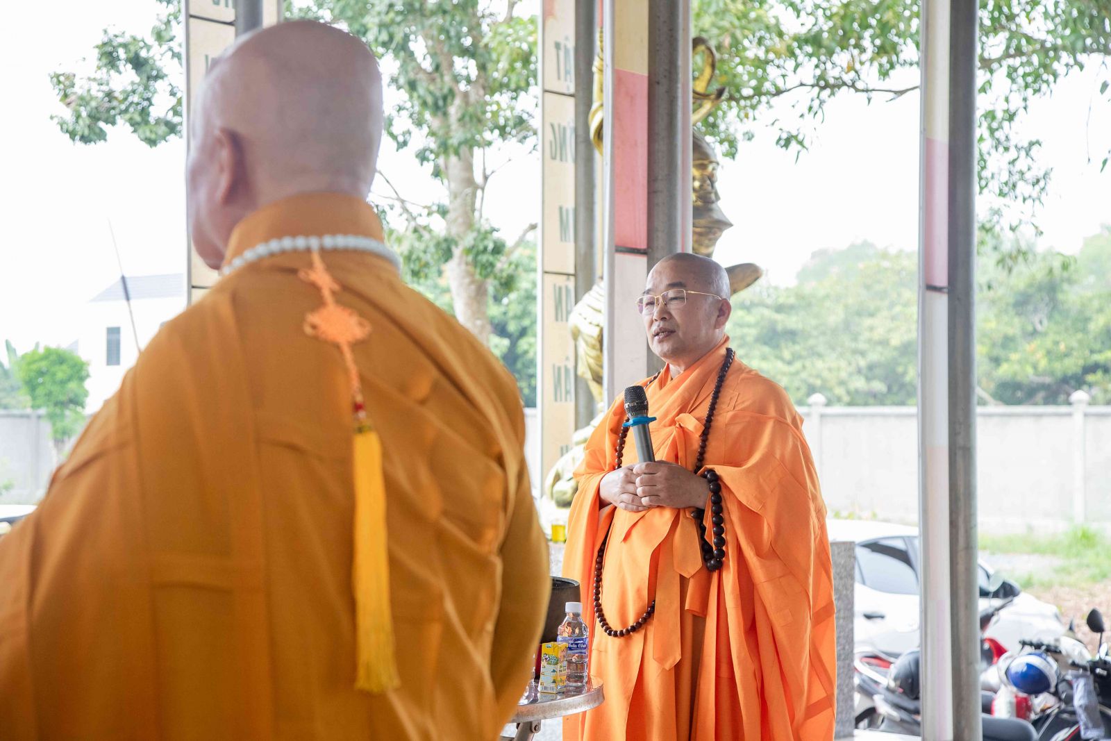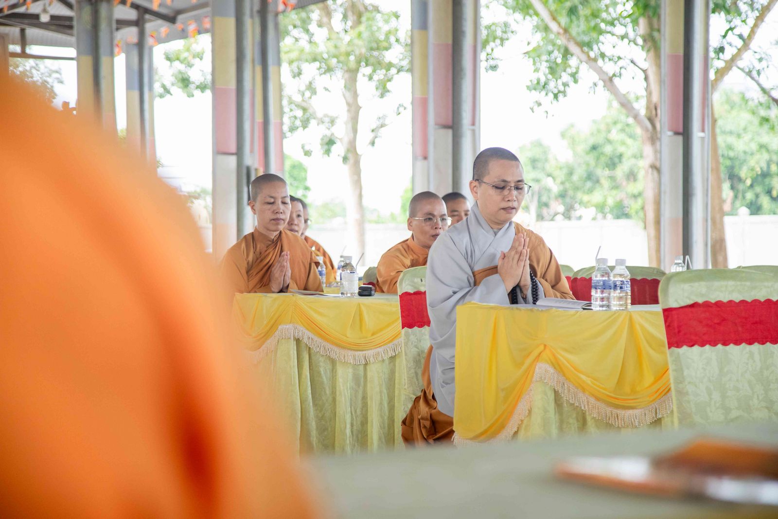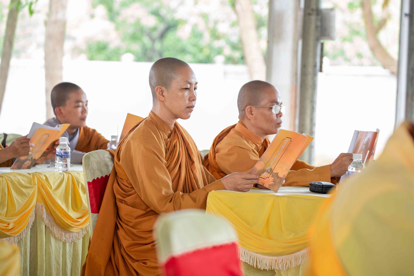 Kỳ Bố-tát hàng tháng ngoài mùa An cư kiết hạ nên chư Tôn đức Tăng Ni đồng lắng nghe HT. Thích Thiện Đồng trùng tuyên Kinh Phạm Võng Bồ Tát giới.